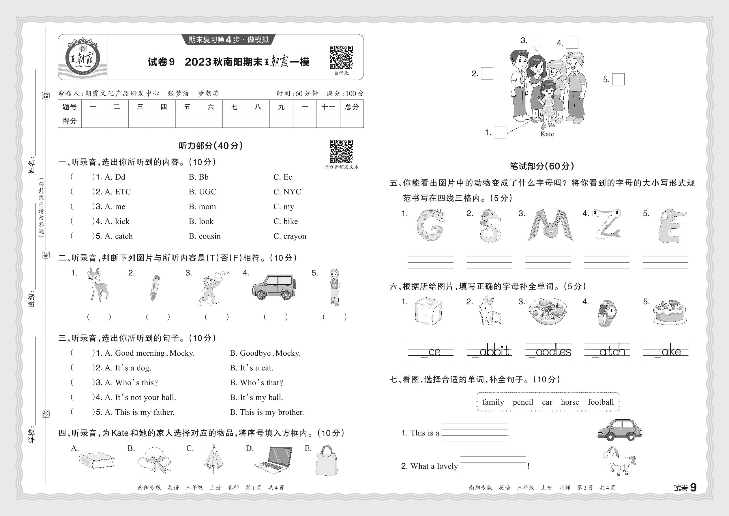 2023秋上册三年级英语北师版 河南南阳期末王朝霞一模【9】
