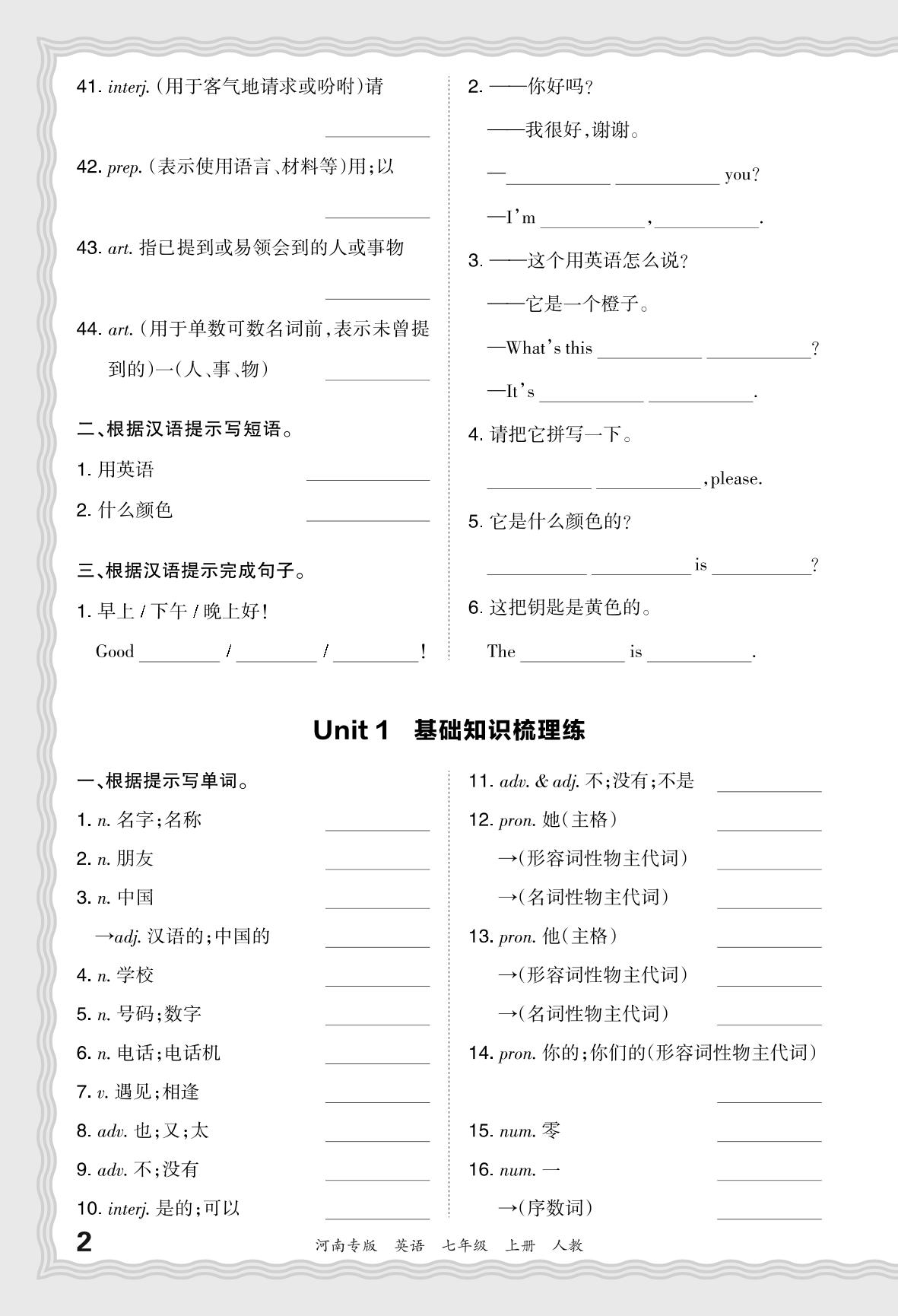 2023秋上册七年级英语人教版 期末过课本·Unit 1 基础知识梳理练_R231127100534263
