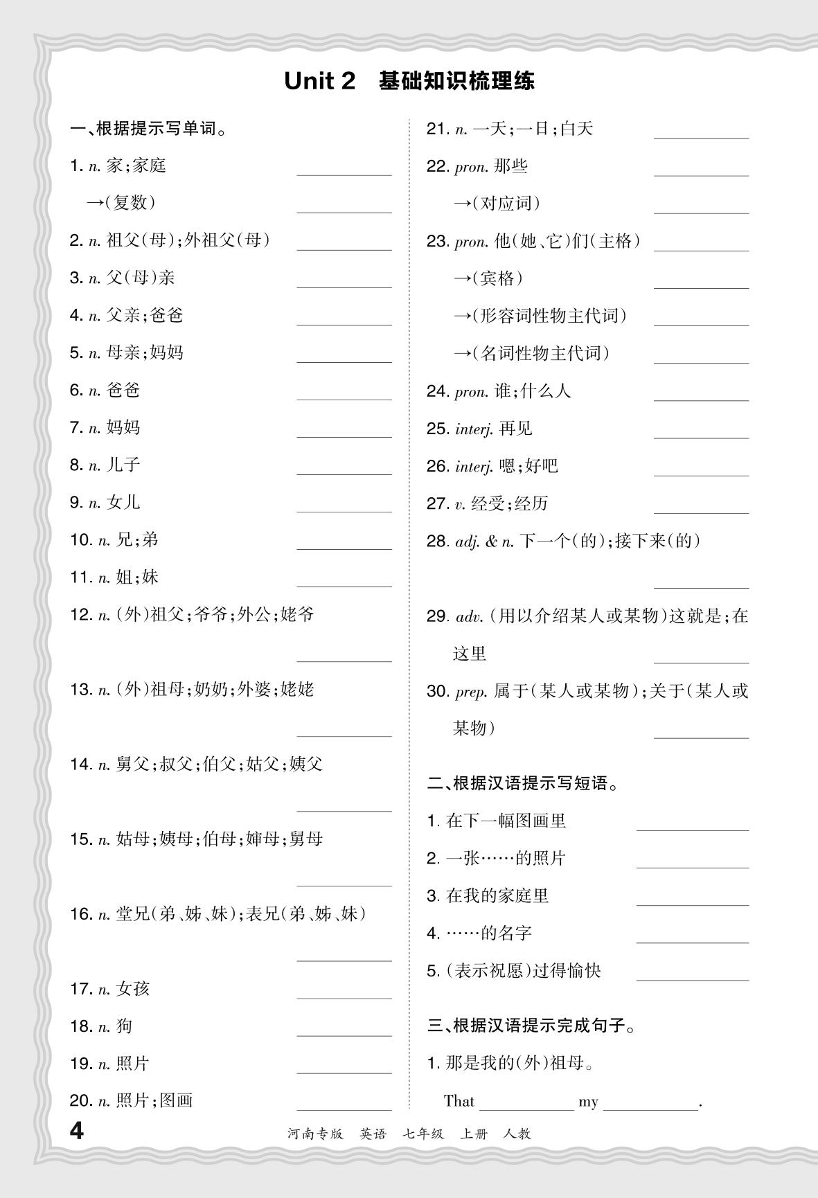 2023秋上册七年级英语人教版 期末过课本·Unit 2 基础知识梳理练_R231127100535659