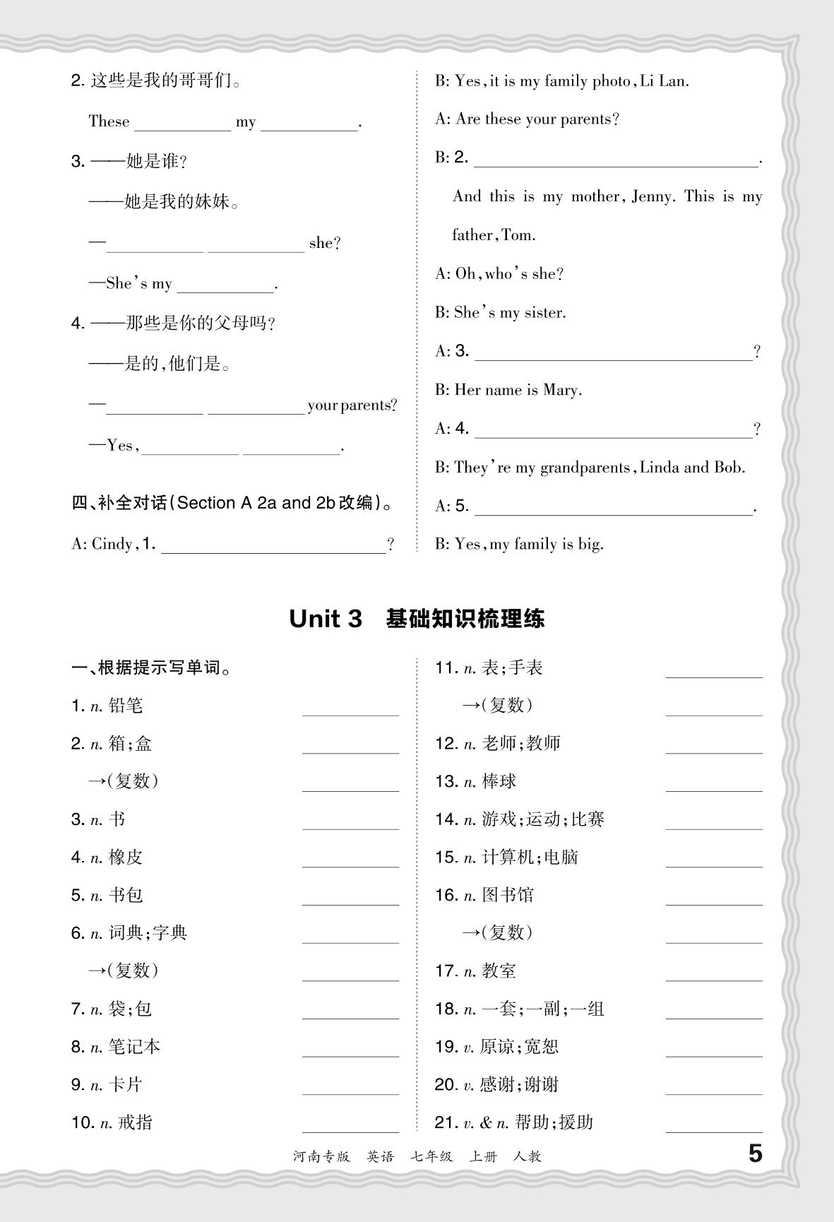 2023秋上册七年级英语人教版 期末过课本·Unit 3 基础知识梳理练_R231127100535726