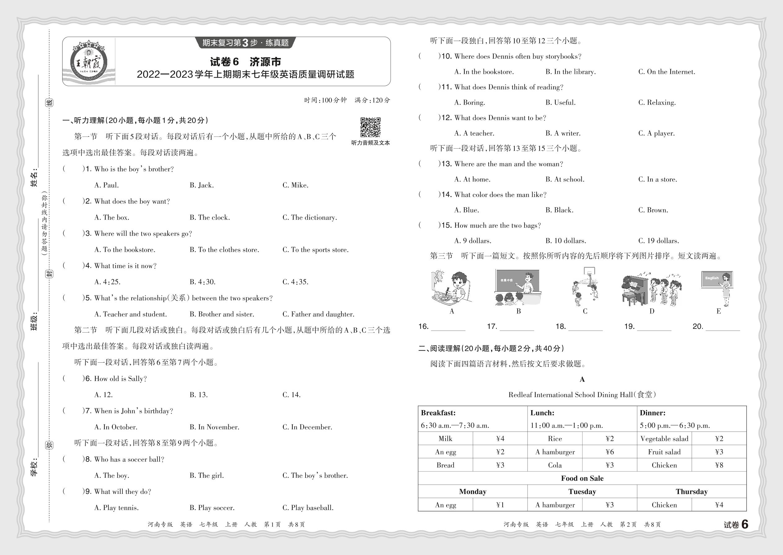 河南省济源市2022—2023学年上期期末七年级英语质量调研试题(人教版)【6】