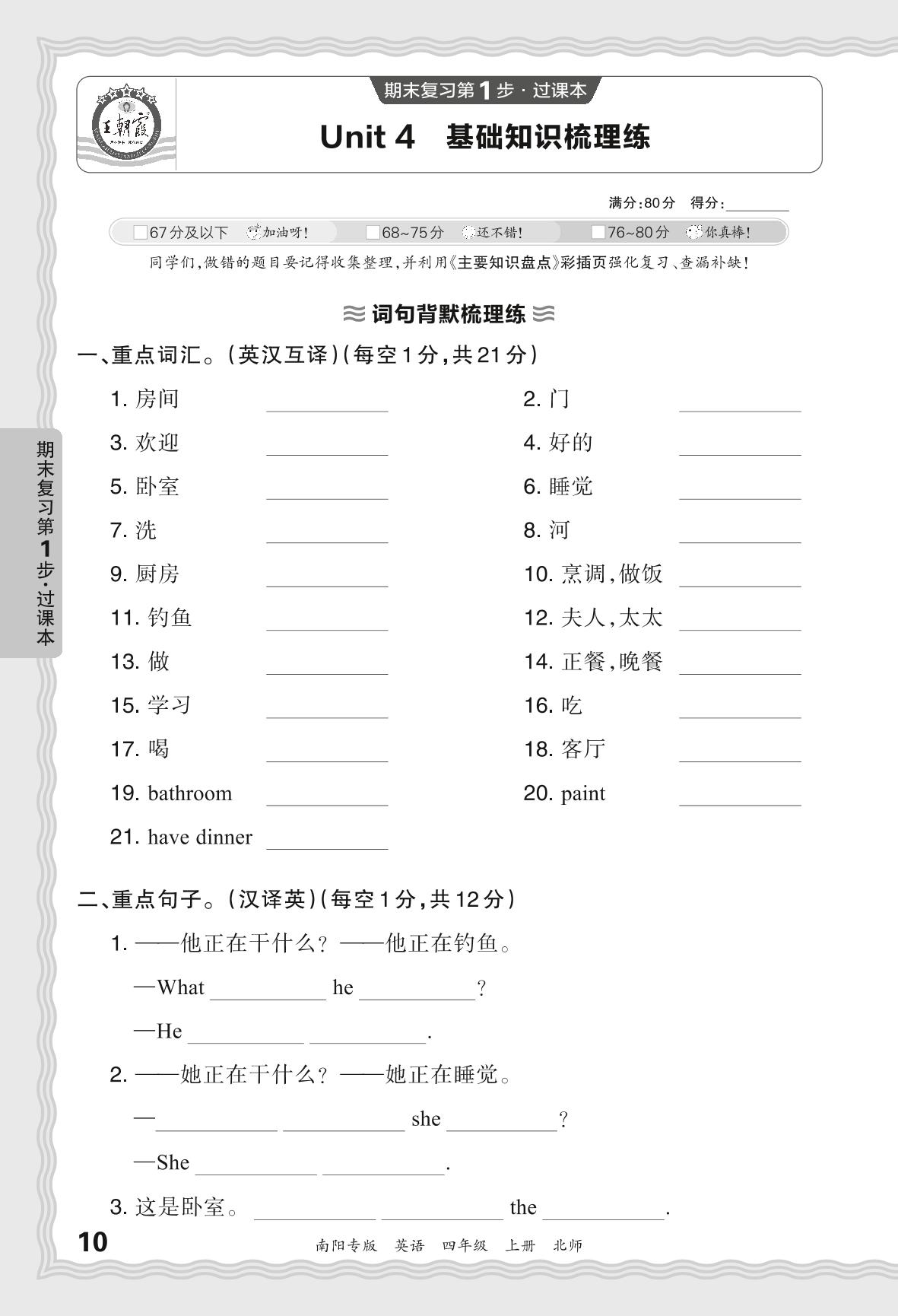 2023秋上册四年级英语北师版 期末过课本·Unit 4 基础知识梳理练