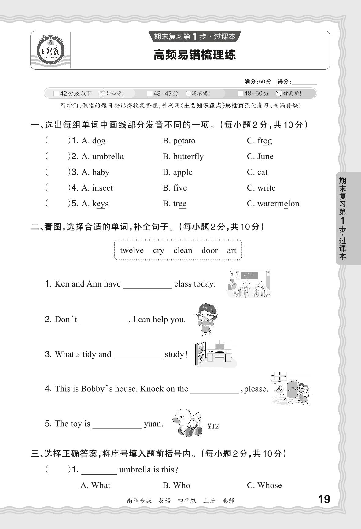 2023秋上册四年级英语北师版 期末过课本·高频易错梳理练