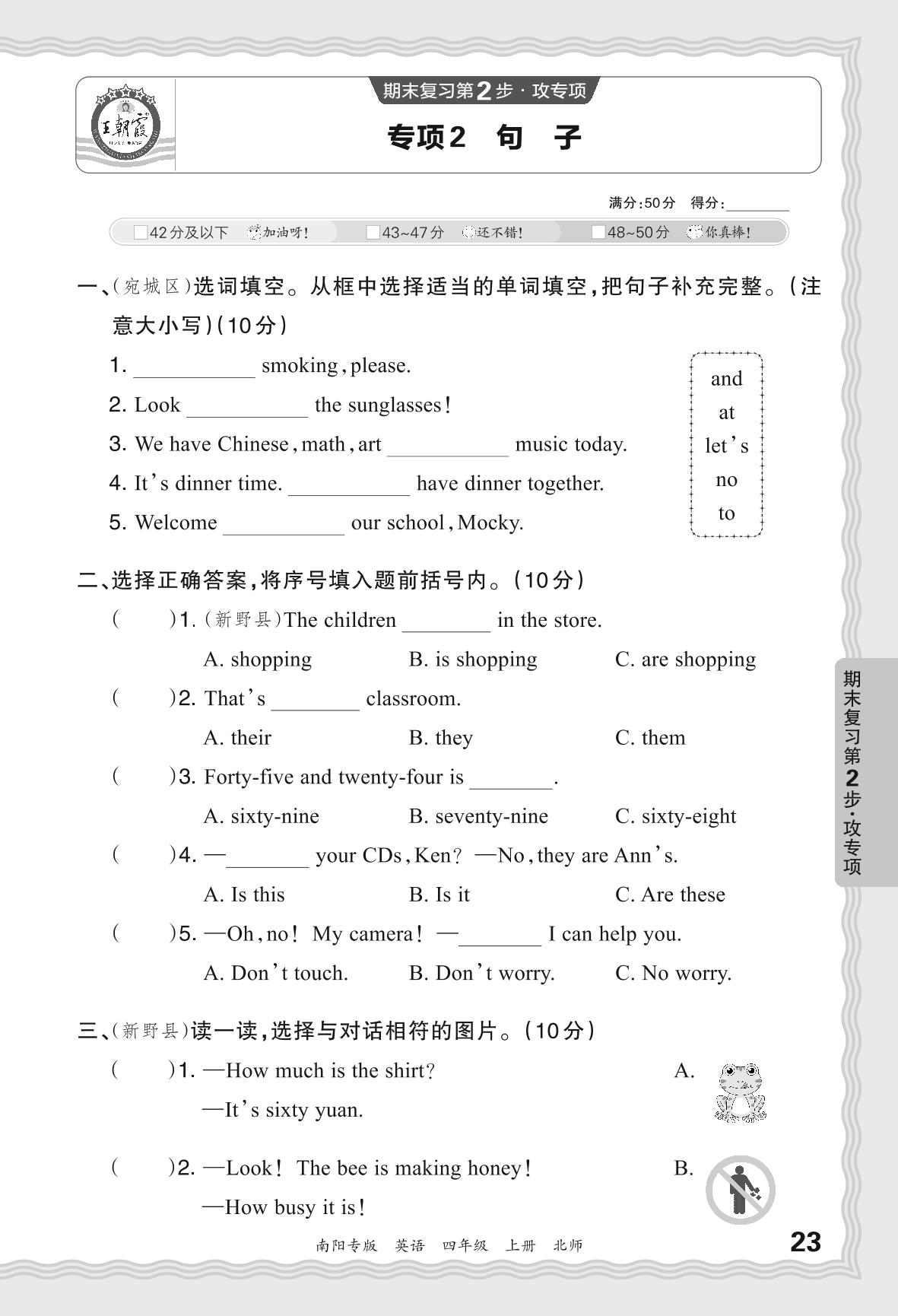 2023秋上册四年级英语北师版 期末专项卷·句子【2】