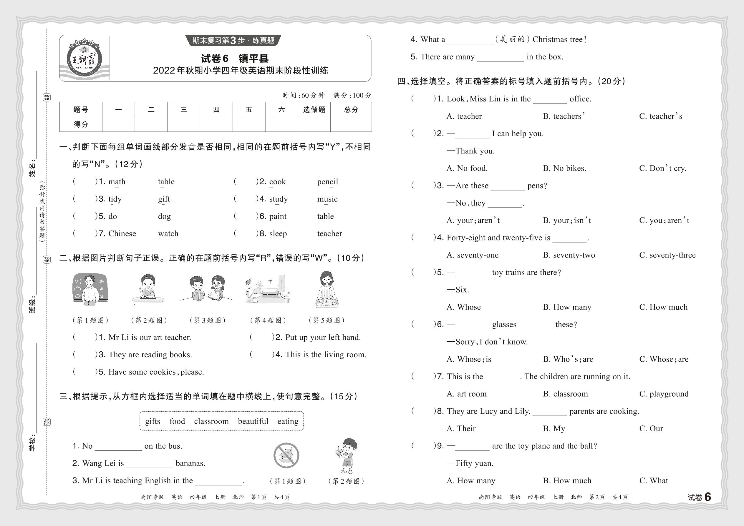 河南省南阳市镇平县2022年秋期小学四年级英语期末阶段性训练(北师版)【6】