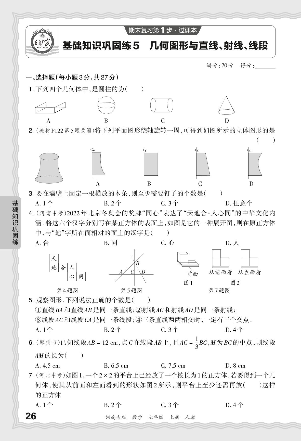 2023秋上册七年级数学人教版 期末过课本·基础知识巩固练 几何图形与直线、射线、线段_R231127101546862【5】