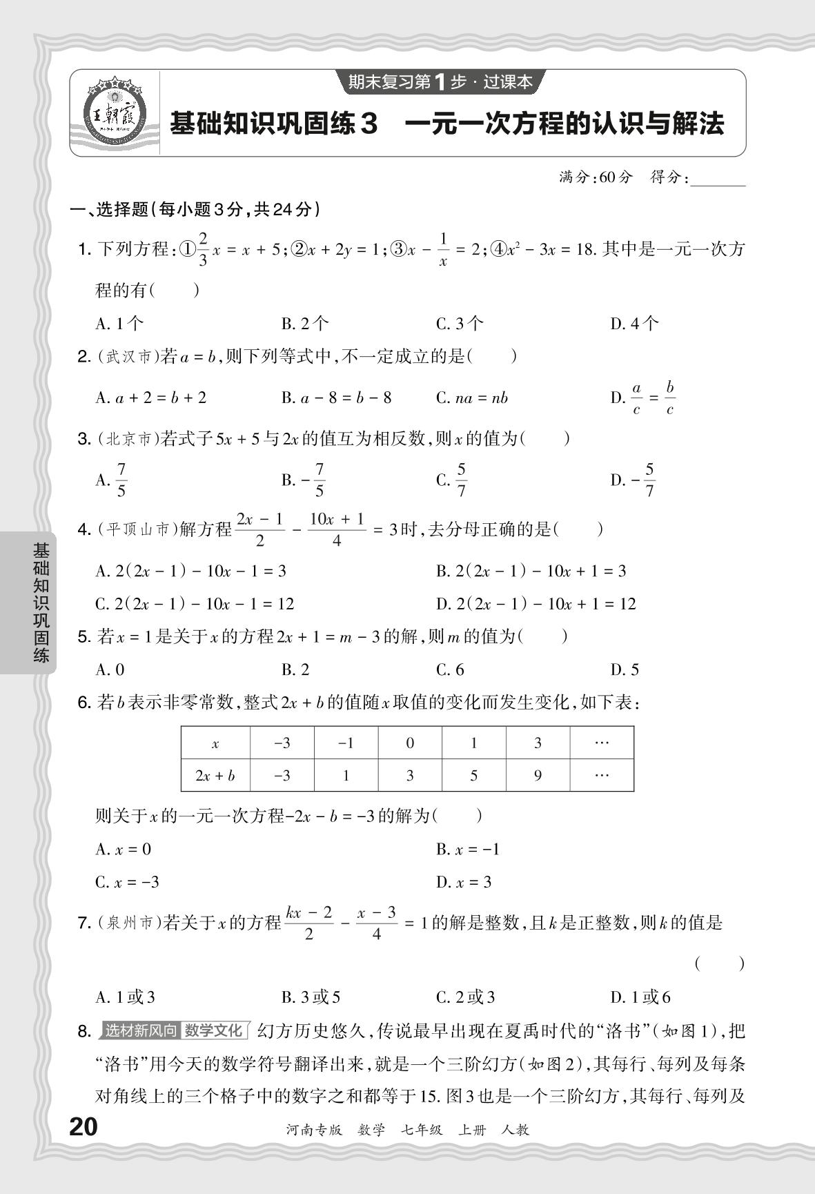 2023秋上册七年级数学人教版 期末过课本·基础知识巩固练 一元一次方程的认识与解法_R231127101547997【3】
