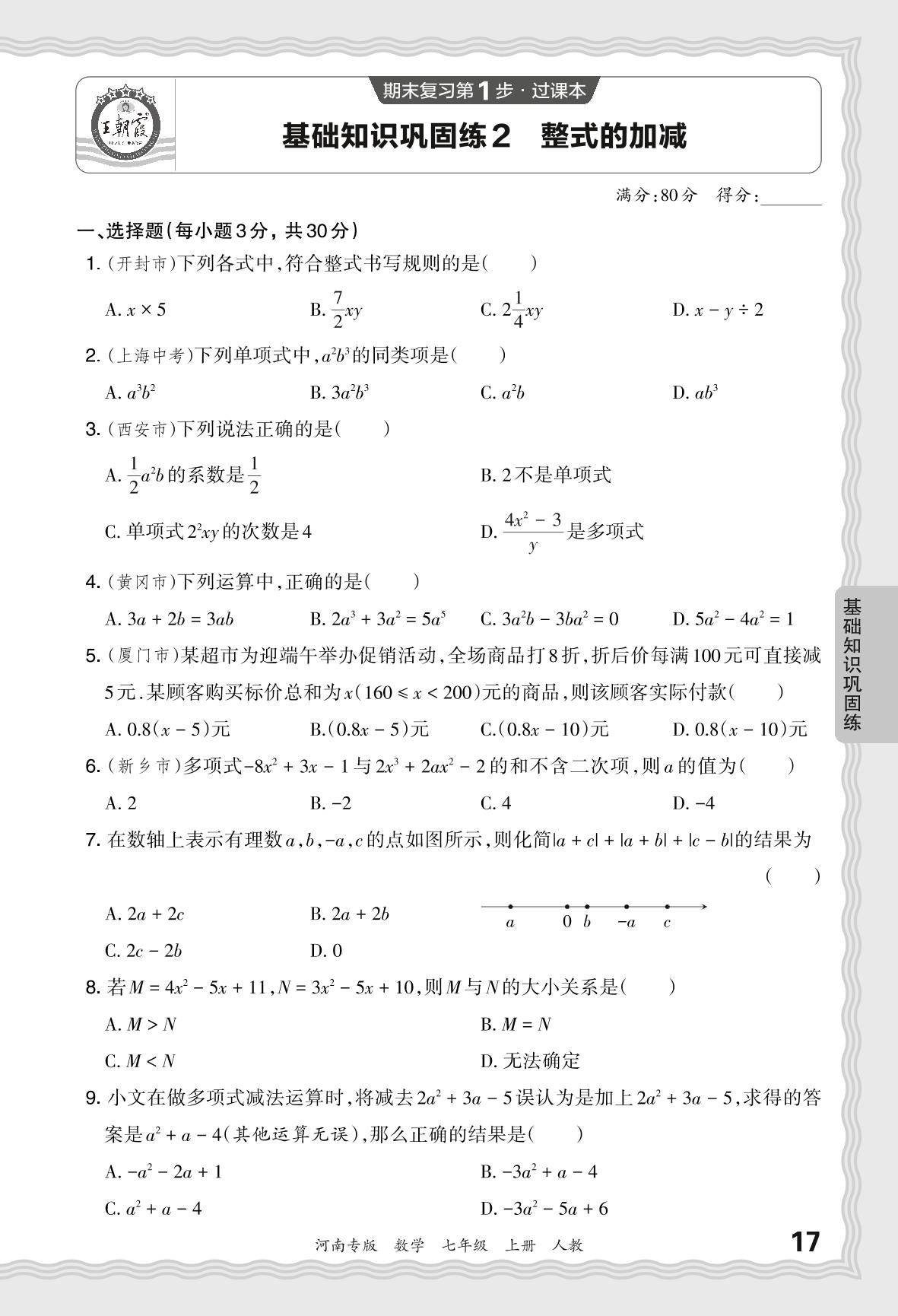 2023秋上册七年级数学人教版 期末过课本·基础知识巩固练 整式的加减_R231127101548710【2】