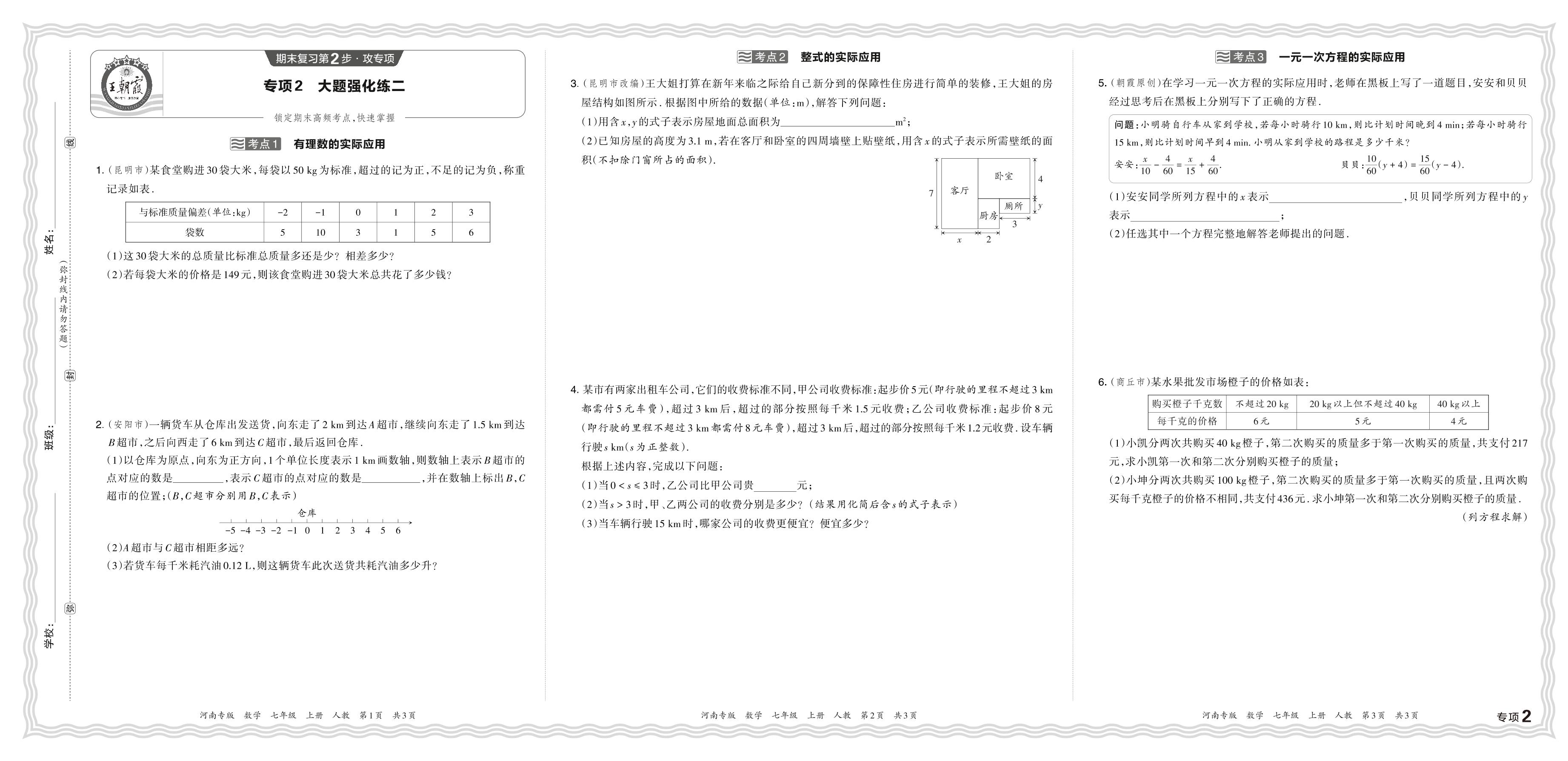 2023秋上册七年级数学人教版 期末专项卷·大题强化练二_R231127101550130