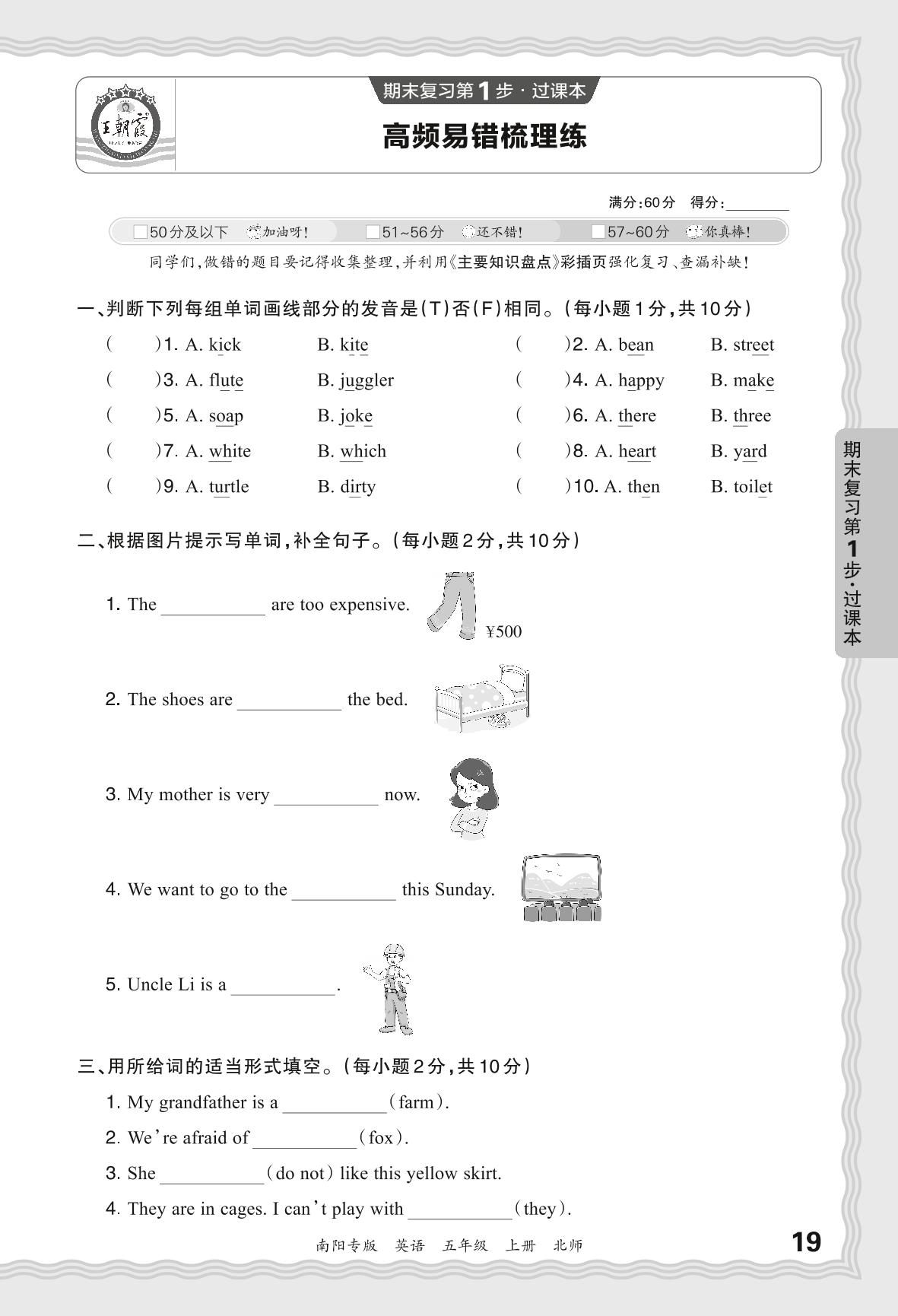 2023秋上册五年级英语北师版 期末过课本·高频易错梳理练