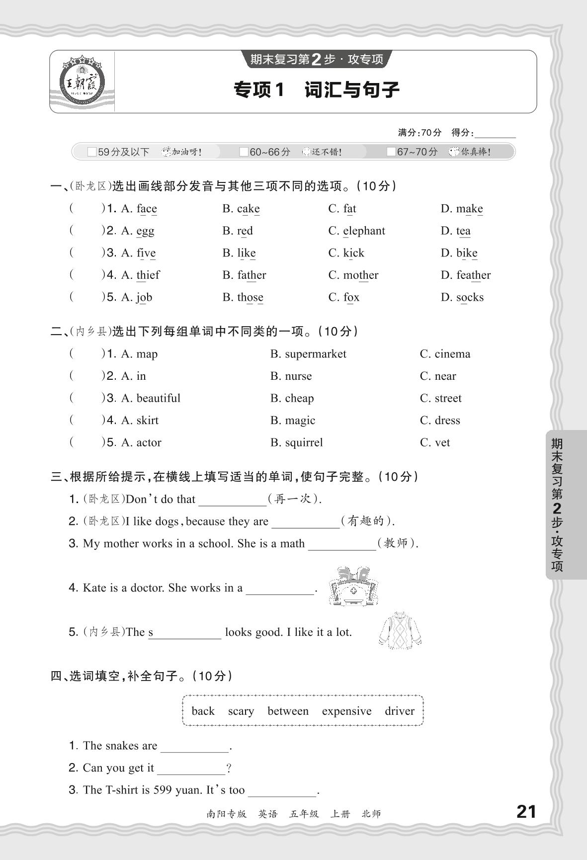 2023秋上册五年级英语北师版 期末专项卷·词汇与句子【1】