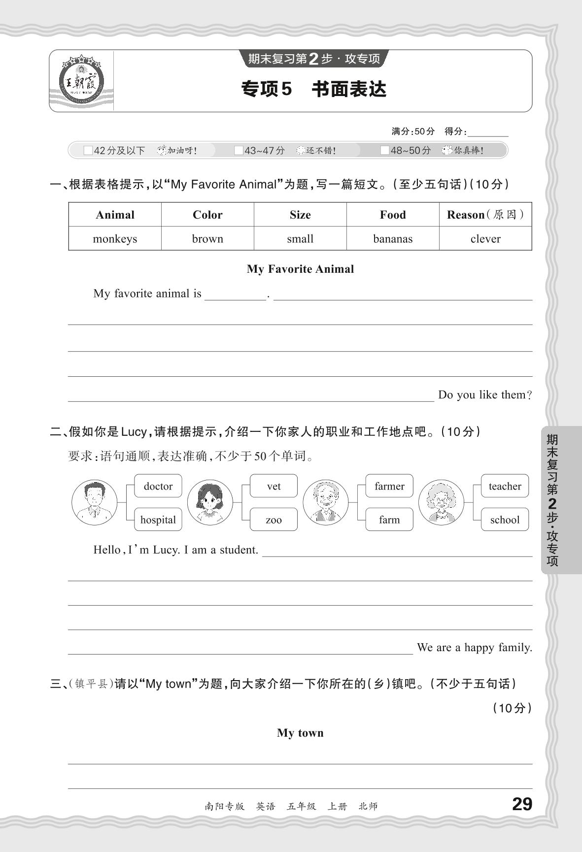 2023秋上册五年级英语北师版 期末专项卷·书面表达【5】