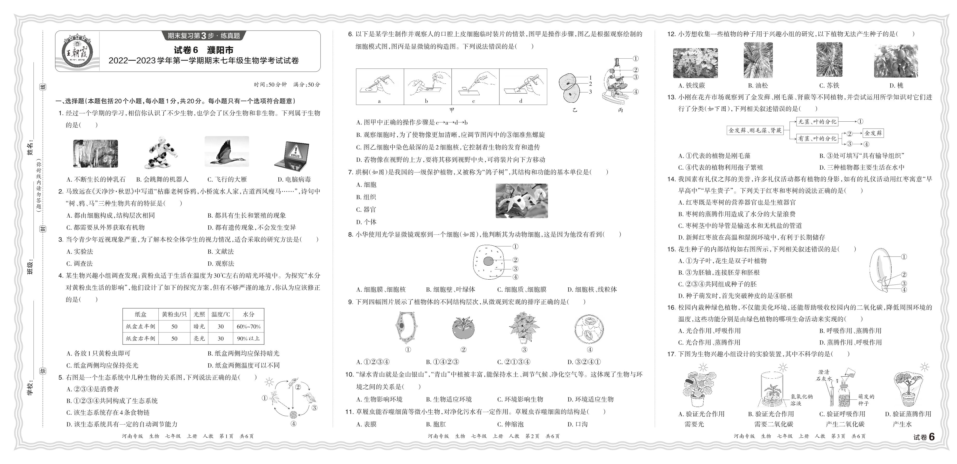 河南省濮阳市2022—2023学年第一学期期末七年级生物学考试试卷(人教版)【6】