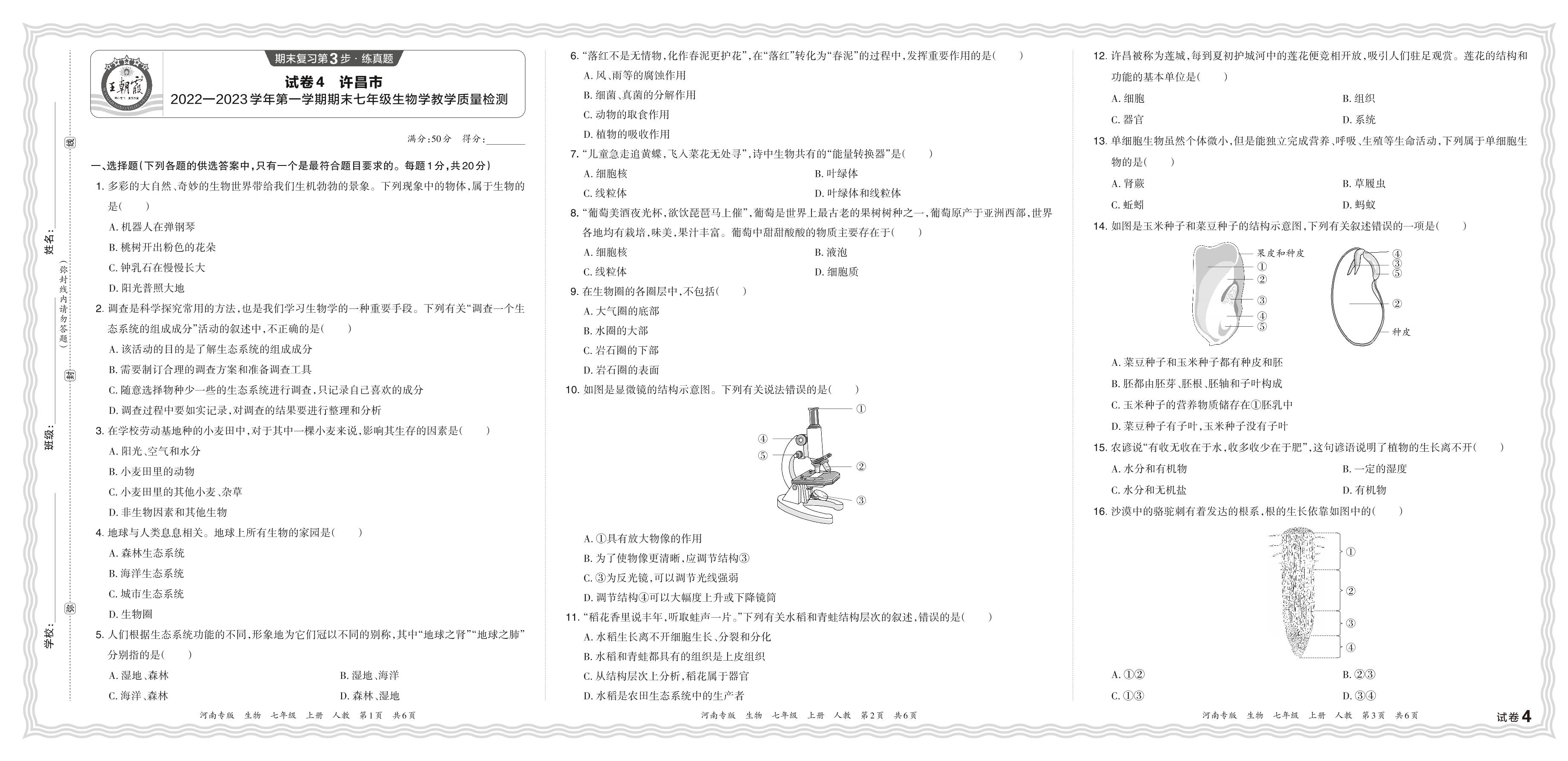 河南省许昌市2022—2023学年第一学期期末七年级生物学教学质量检测(人教版)【4】