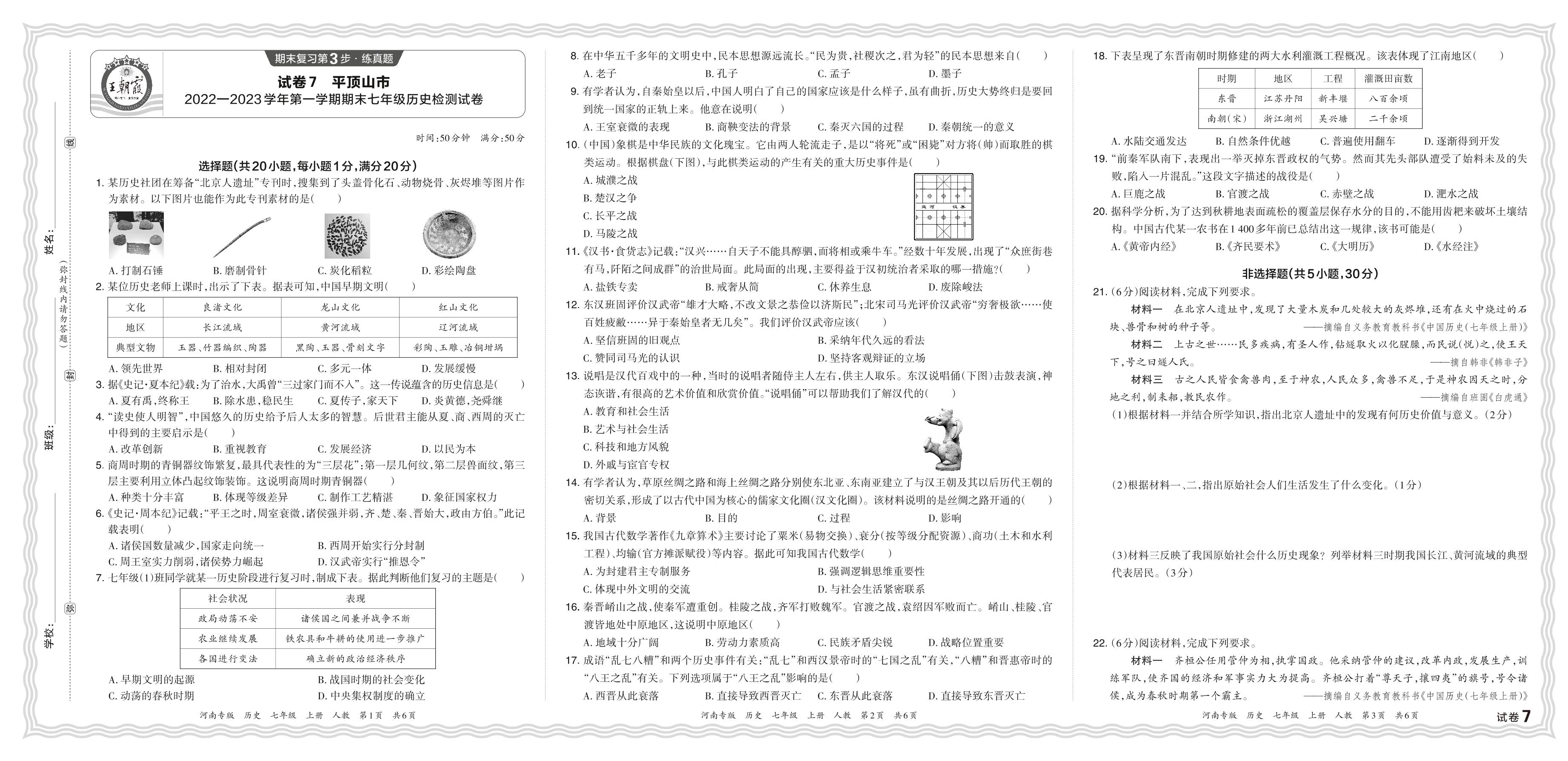 河南省平顶山市2022—2023学年第一学期期末七年级历史检测试卷(人教版)【7】