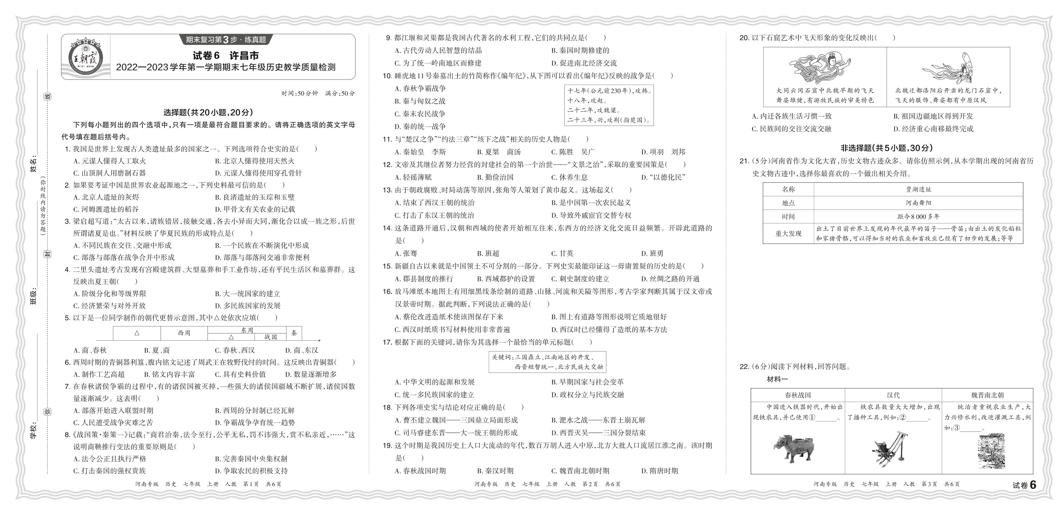 河南省许昌市2022—2023学年第一学期期末七年级历史教学质量检测(人教版)【6】