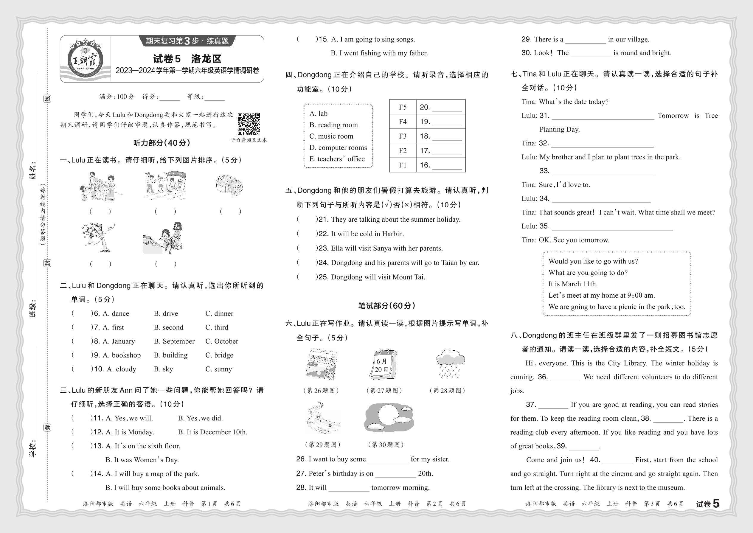 河南省洛阳市洛龙区2023—2024学年第一学期六年级英语学情调研卷(科普版)【5】