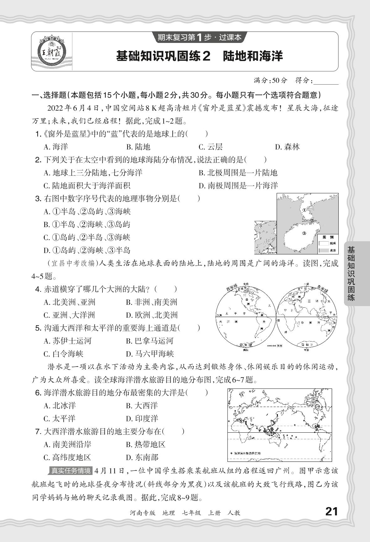 2023秋上册七年级地理人教版 期末过课本·基础知识巩固练 陆地和海洋【2】