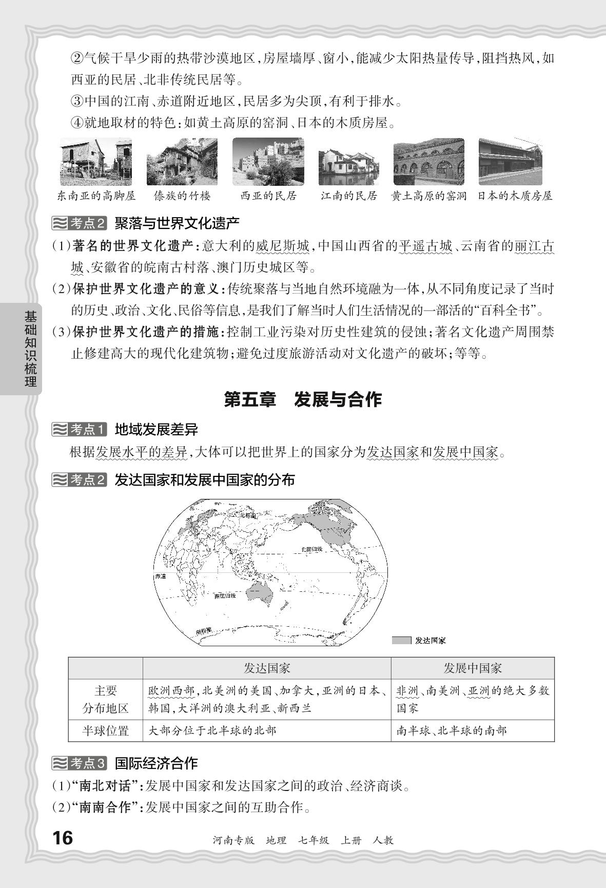 2023秋上册七年级地理人教版 期末过课本·基础知识梳理第五章 发展与合作