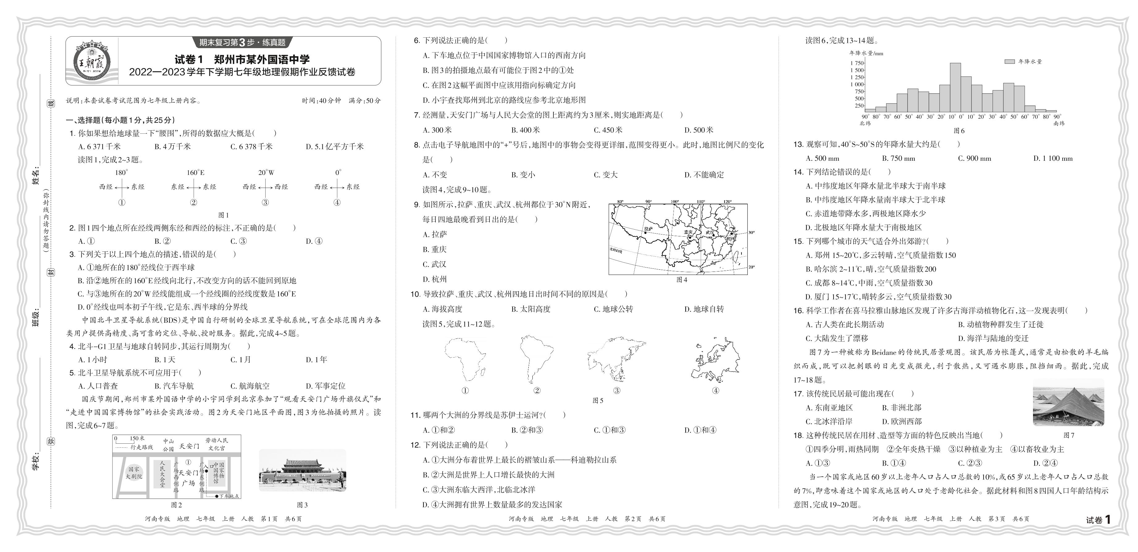 河南省郑州市某外国语中学2022—2023学年下学期七年级地理假期作业反馈试卷(人教版)【1】