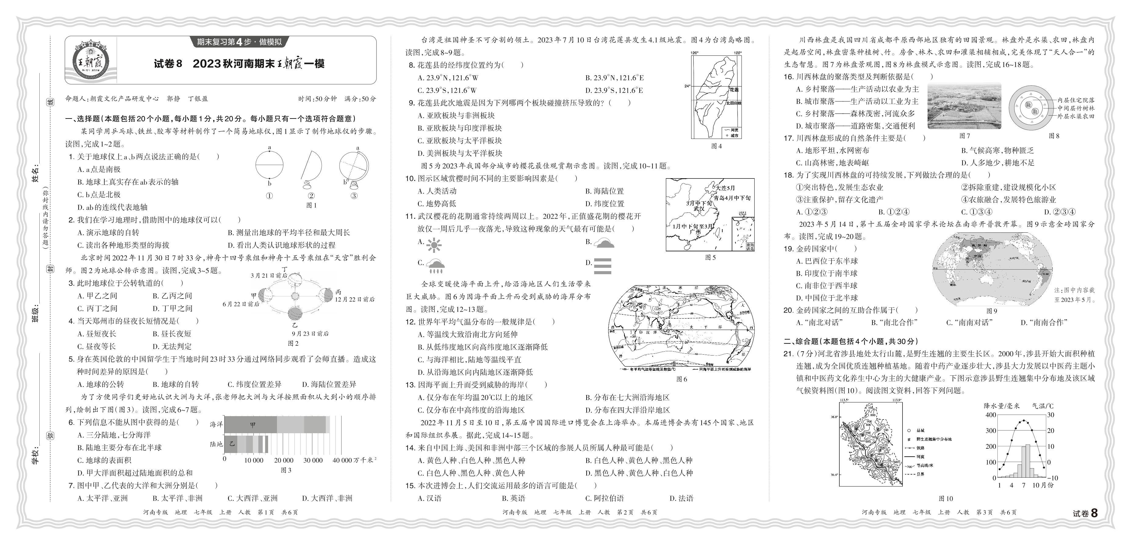 2023秋上册七年级地理人教版 河南期末王朝霞一模