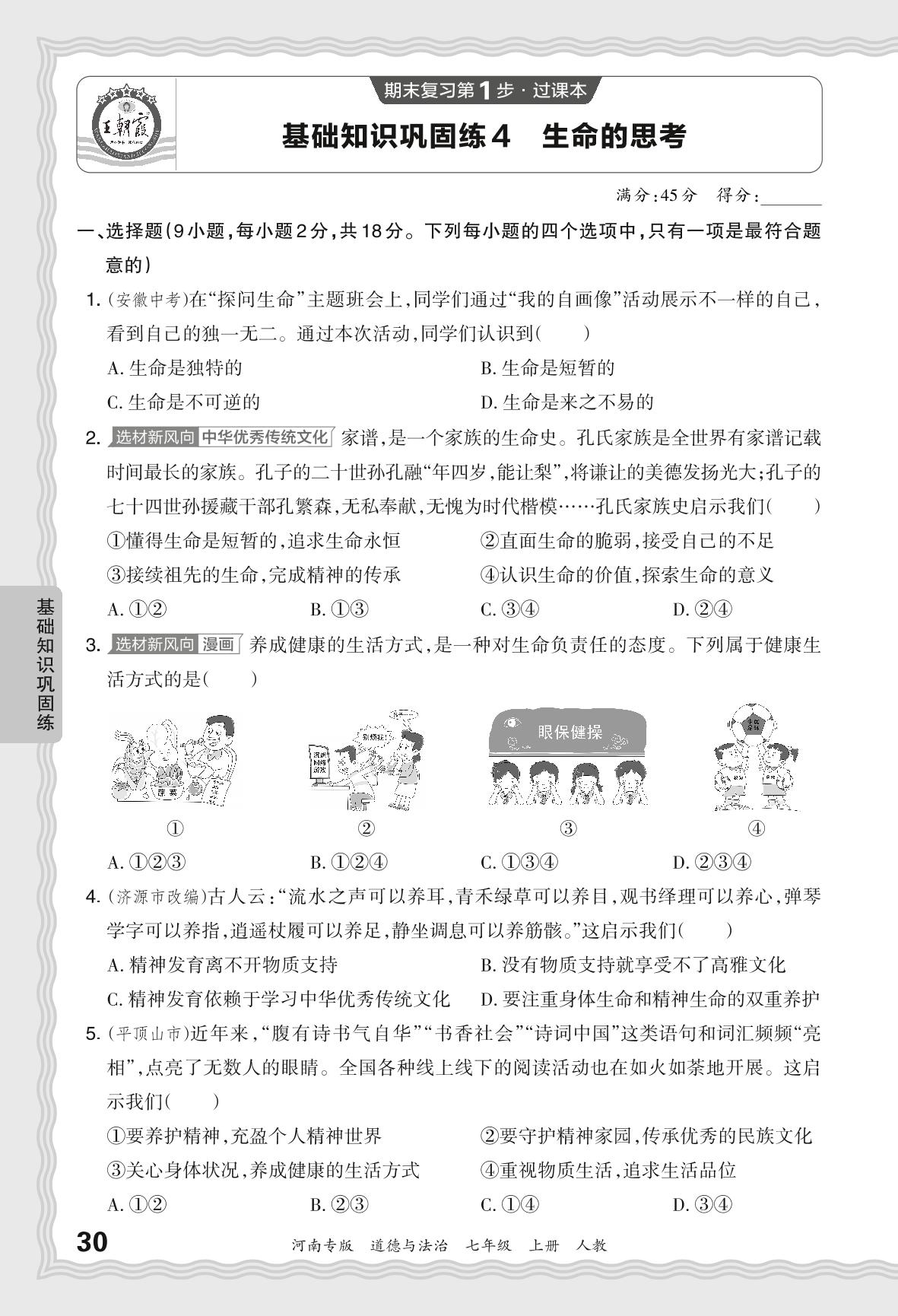 2023秋上册七年级道德与法治人教版 期末过课本·基础知识巩固练 生命的思考_R231127104406354【4】