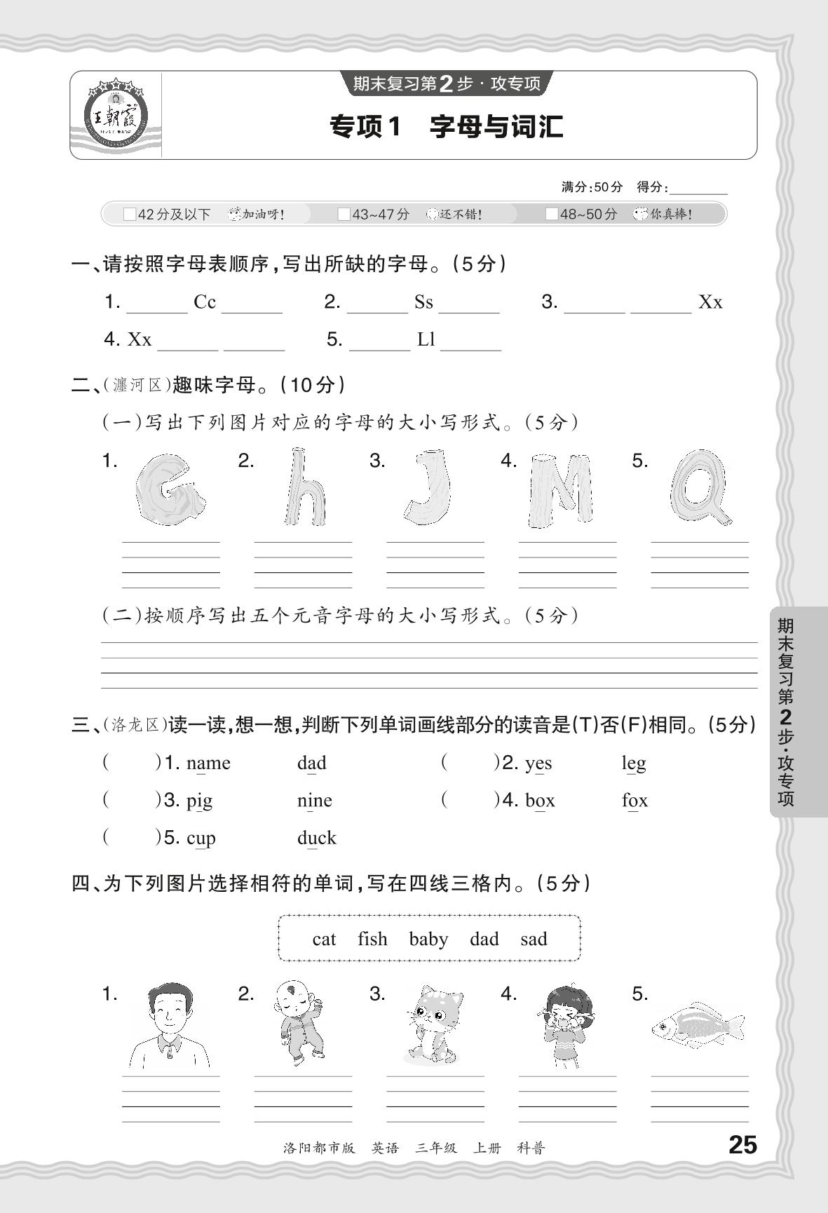 2023秋上册三年级英语科普版 期末专项卷·字母与词汇【1】