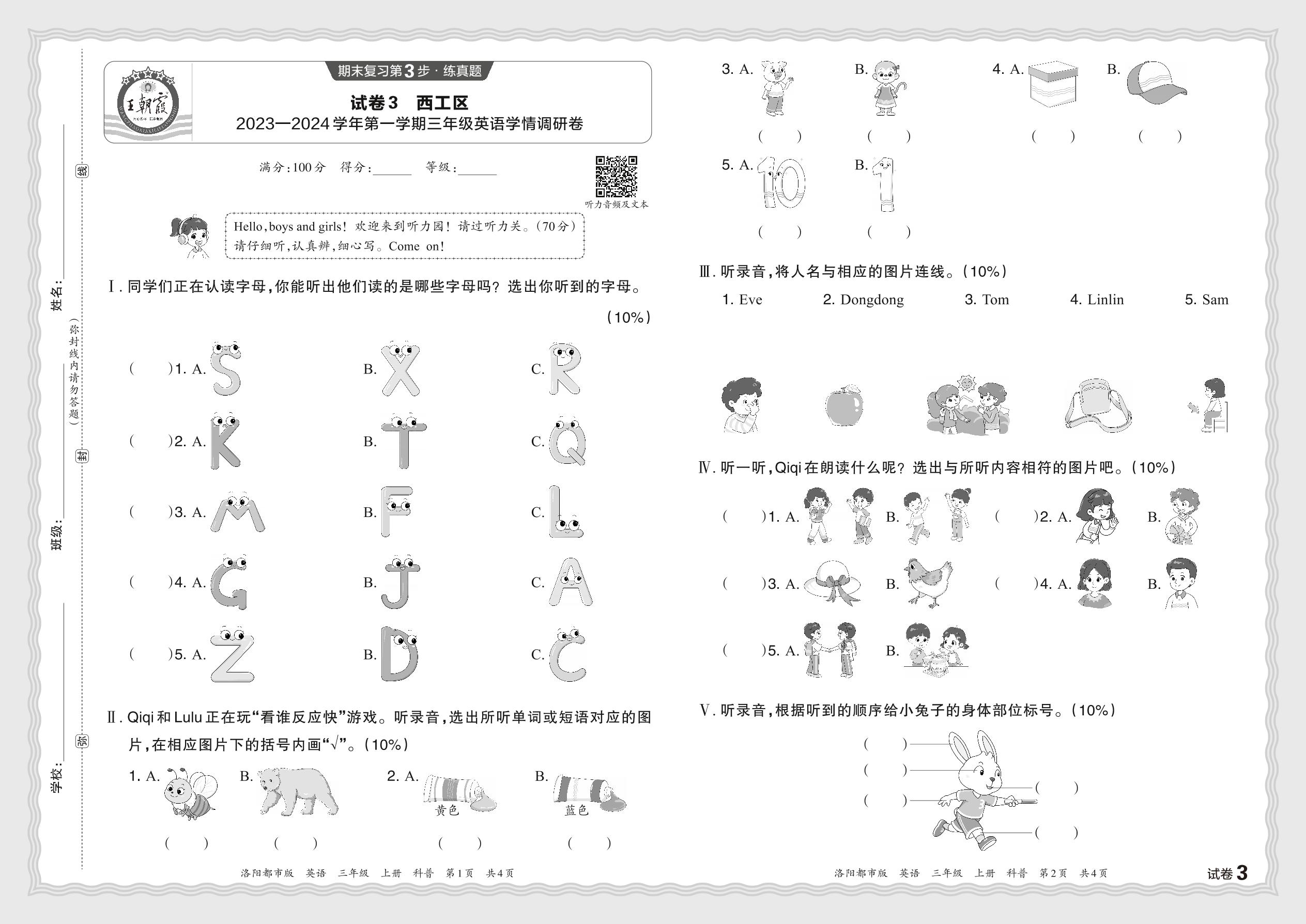 河南省洛阳市西工区2023—2024学年第一学期三年级英语学情调研卷(科普版)【3】