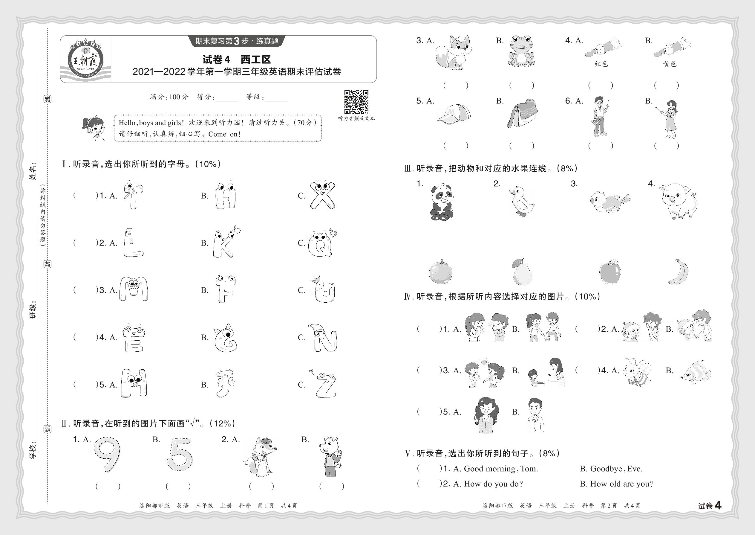 河南省洛阳市西工区2021—2022学年第一学期三年级英语期末评估试卷【4】