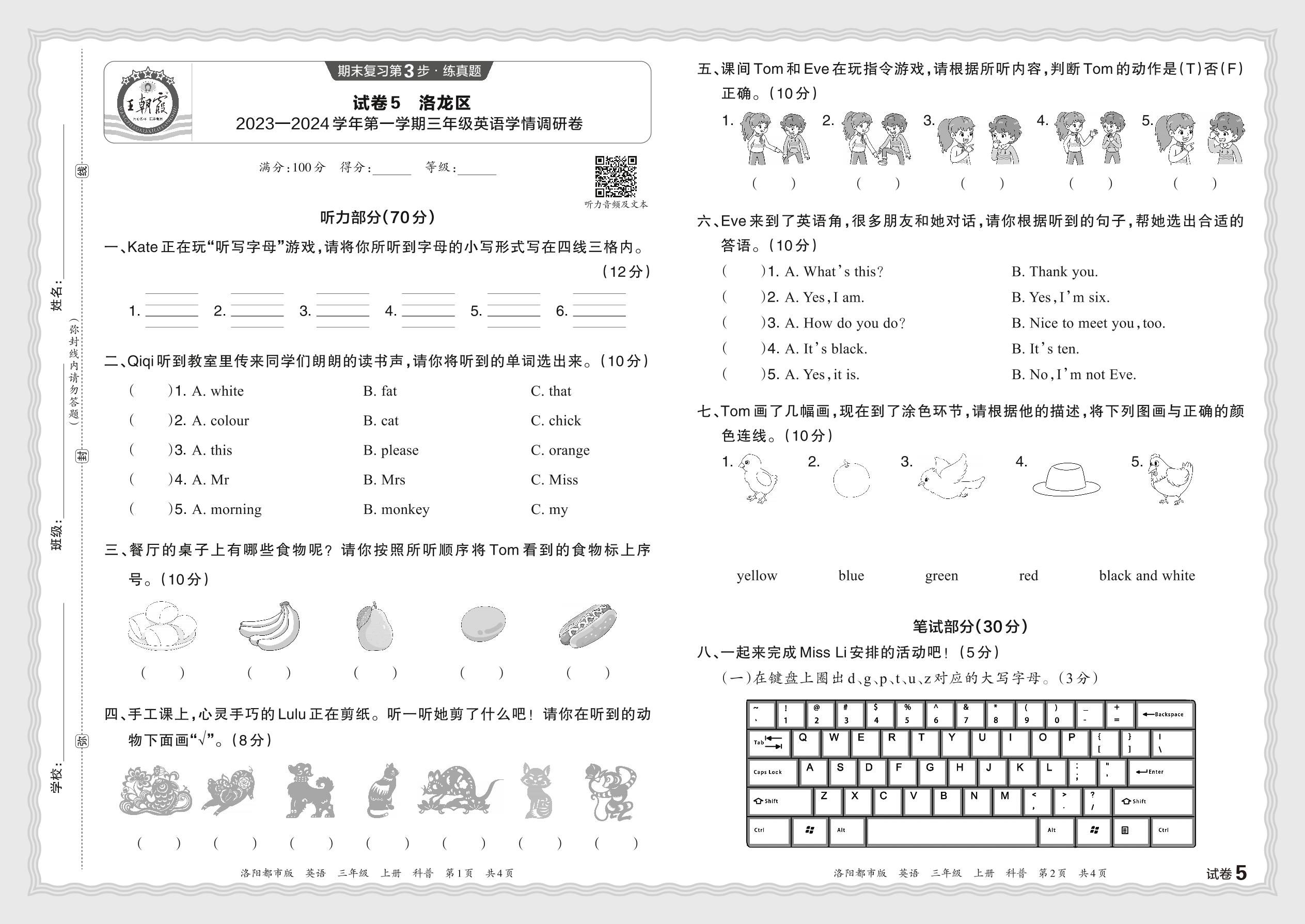 河南省洛阳市洛龙区2023—2024学年第一学期三年级英语学情调研卷(科普版)【5】