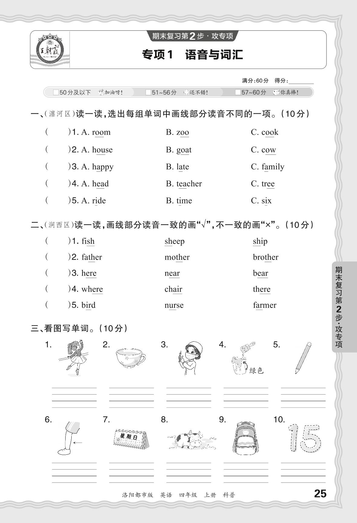 2023秋上册四年级英语科普版 期末专项卷·语音与词汇_R231127105344385【1】