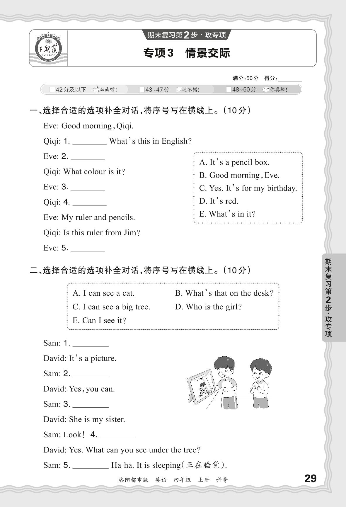 2023秋上册四年级英语科普版 期末专项卷·情景交际_R231127105345721【3】