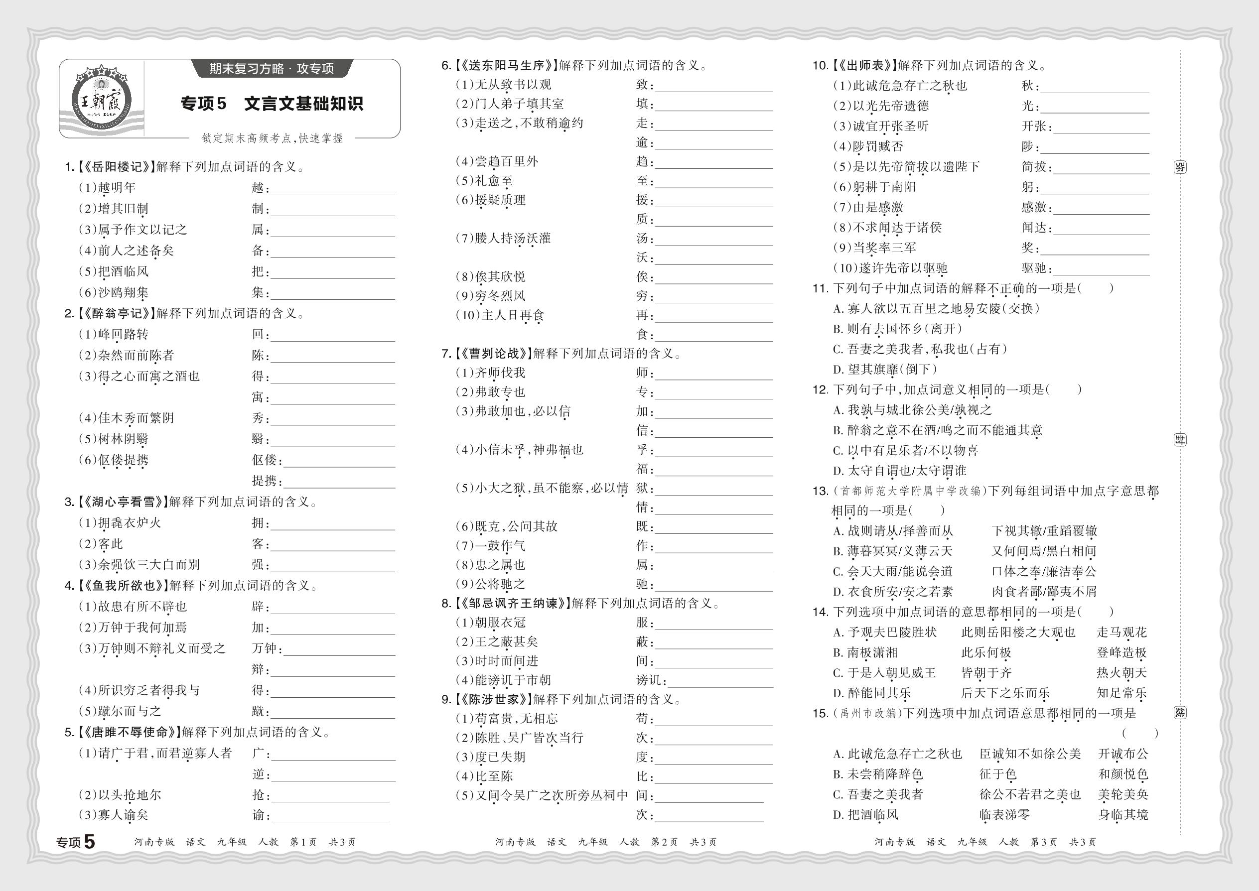 2023秋上册九年级语文人教版 期末专项卷·文言文基础知识【5】