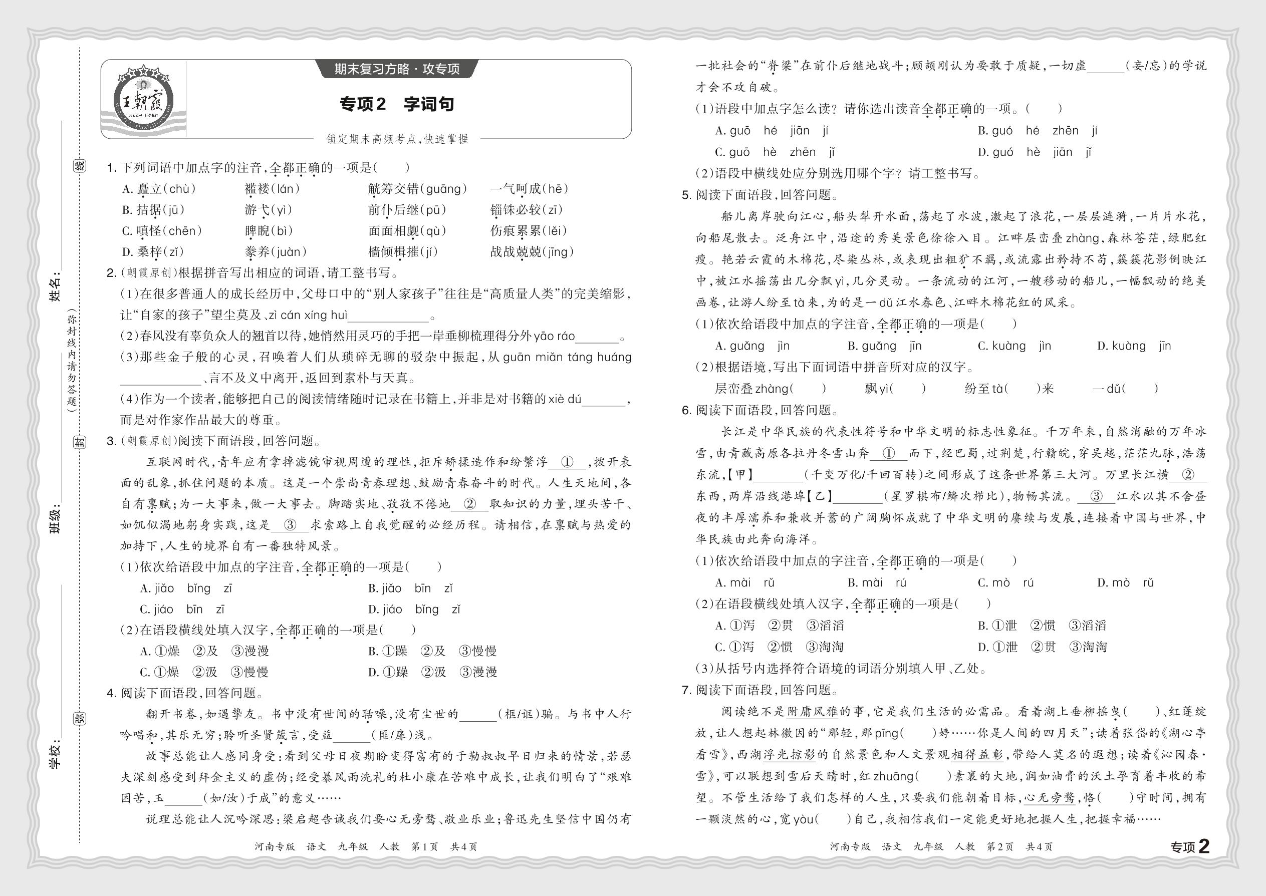 2023秋上册九年级语文人教版 期末专项卷·字词句【2】