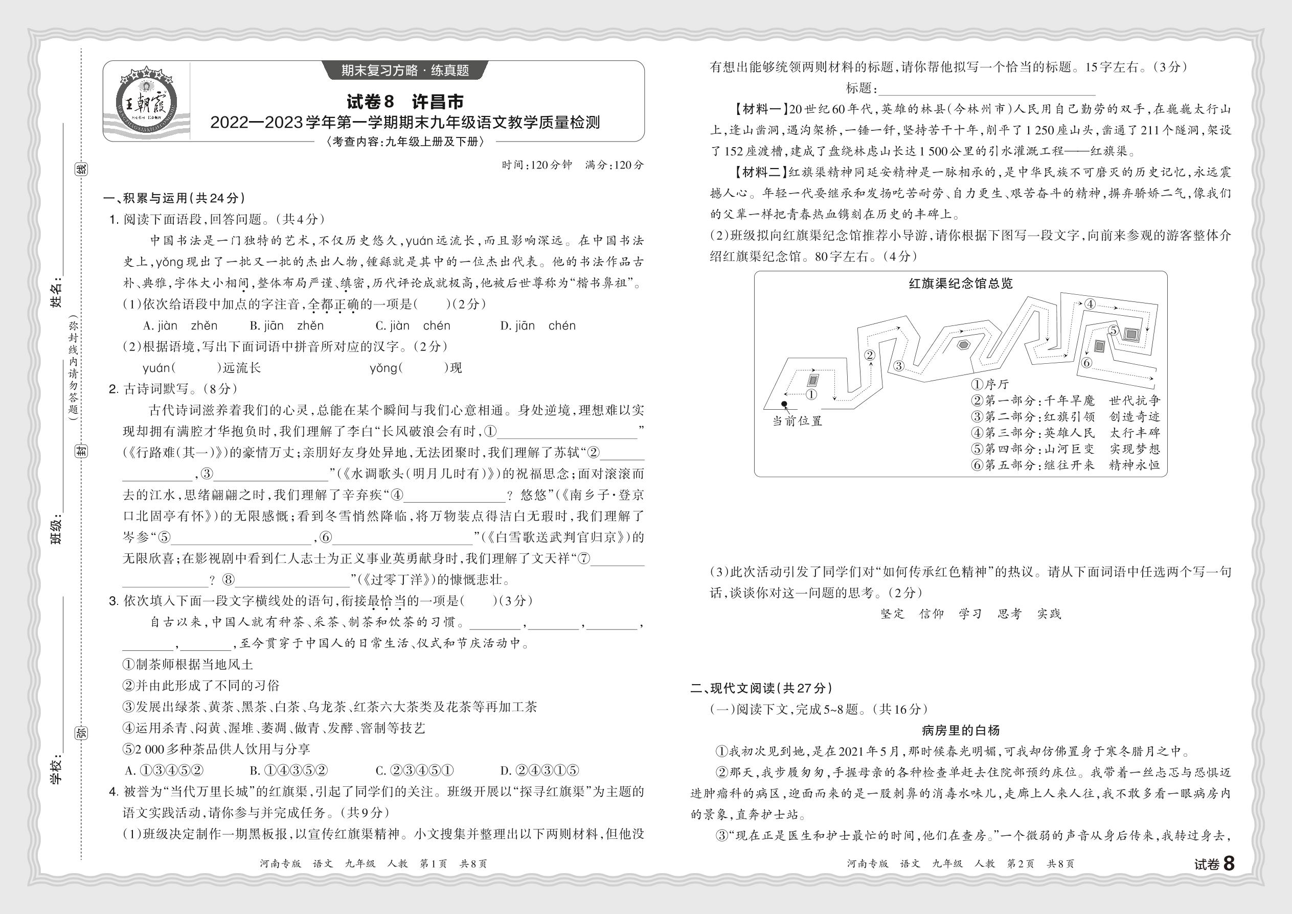 河南省许昌市2022—2023学年第一学期期末九年级语文教学质量检测(人教版)【8】