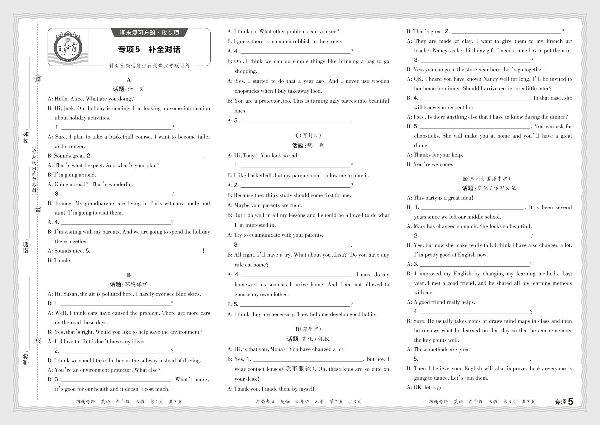 2023秋上册九年级英语人教版 期末专项卷·补全对话【5】