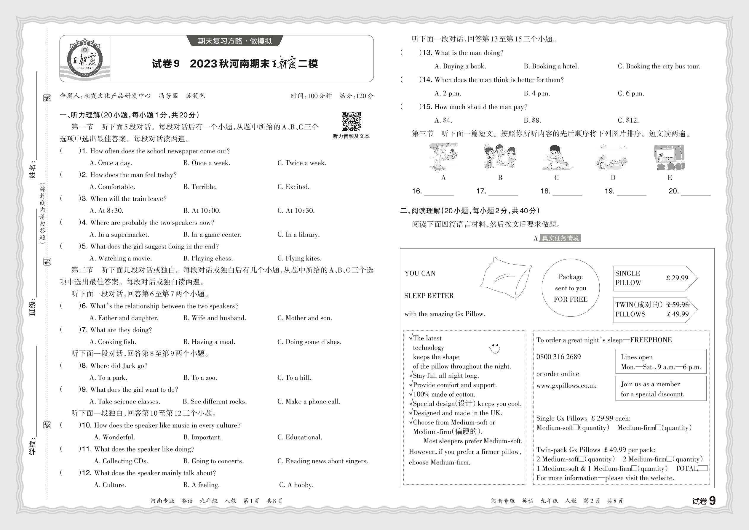 2023秋上册九年级英语人教版 河南期末王朝霞二模