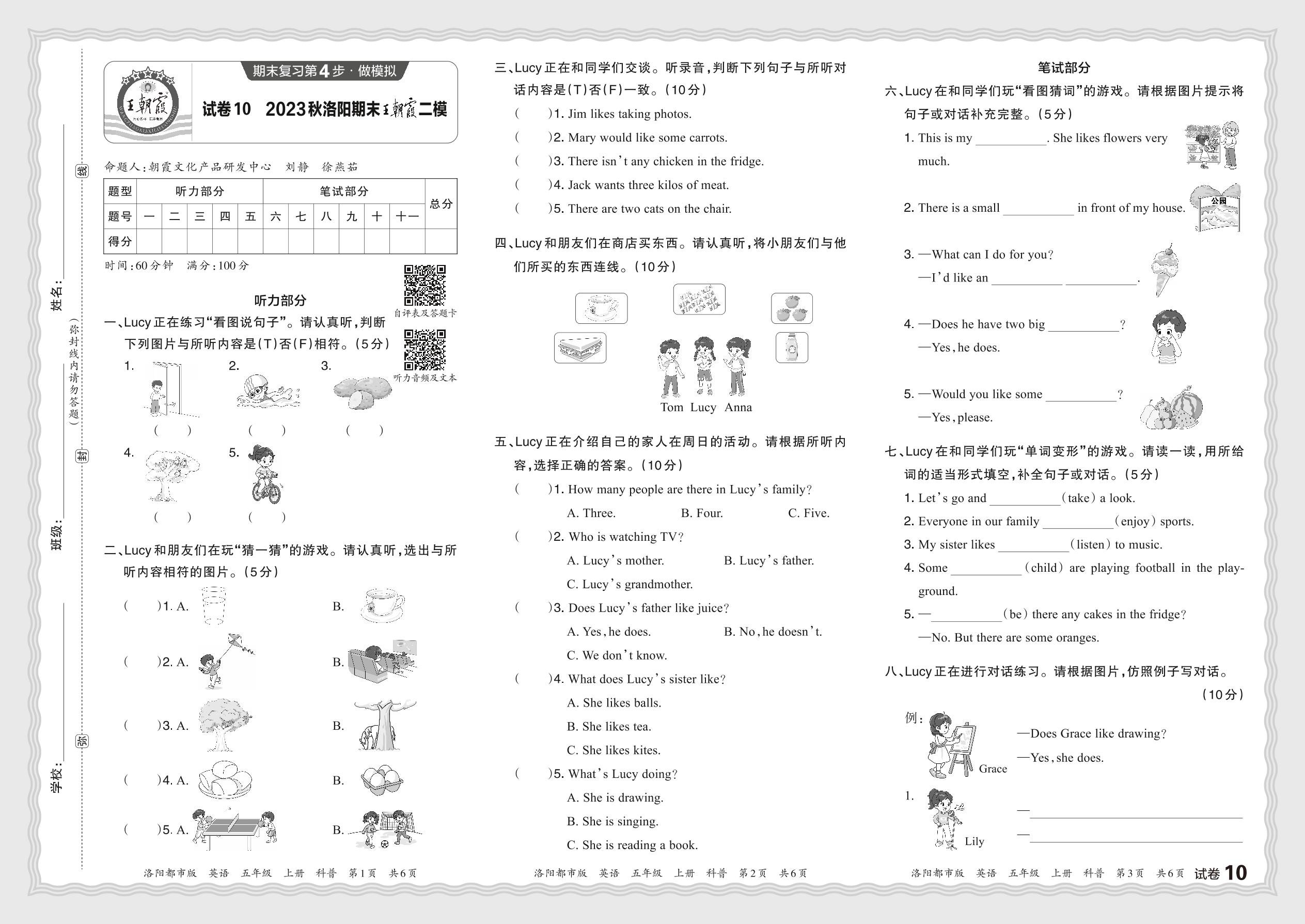 2023秋上册五年级英语科普版 河南洛阳期末王朝霞二模【10】