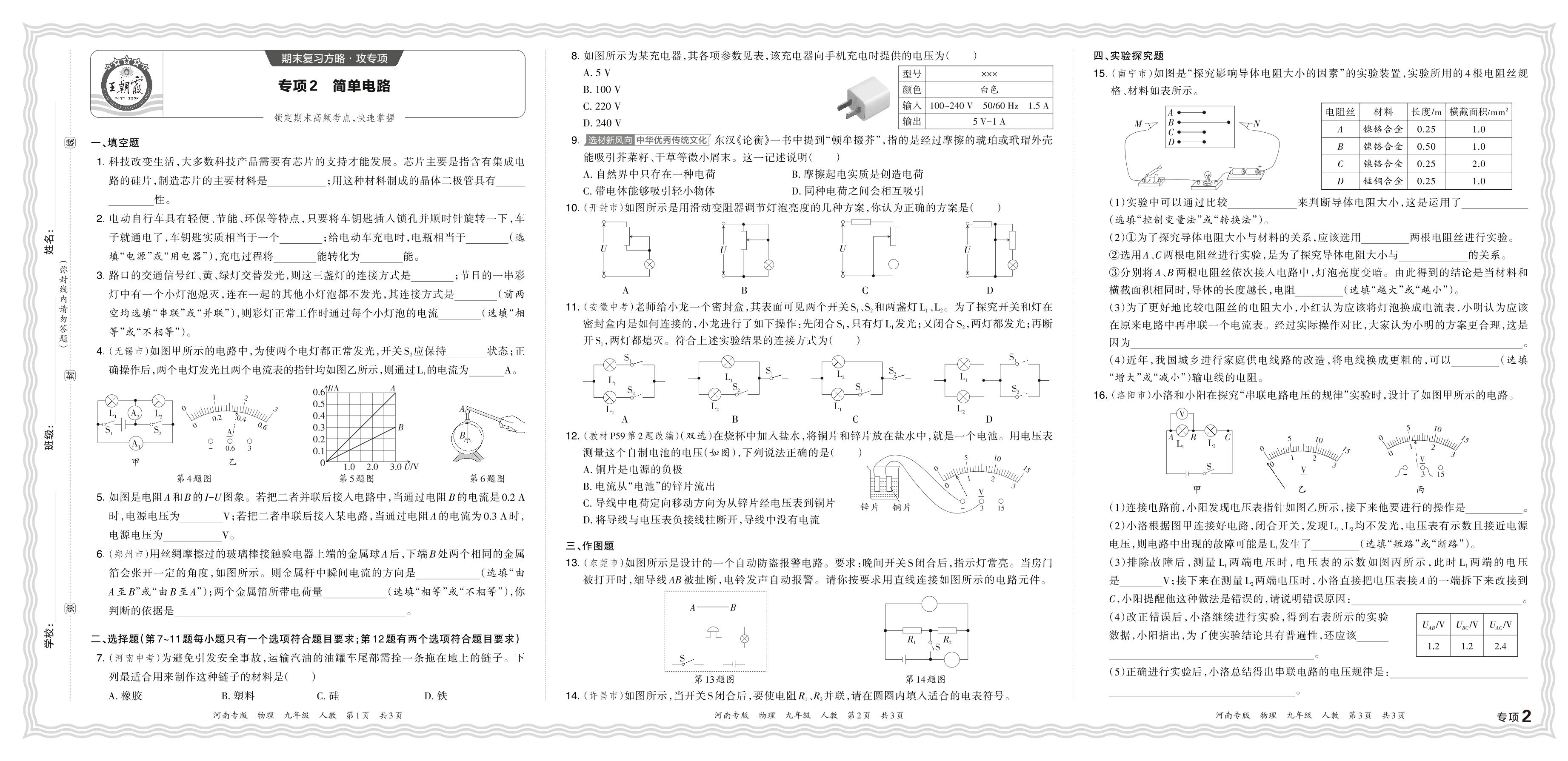 2023秋上册九年级物理人教版 期末专项卷·简单电路_R231127111111563【2】