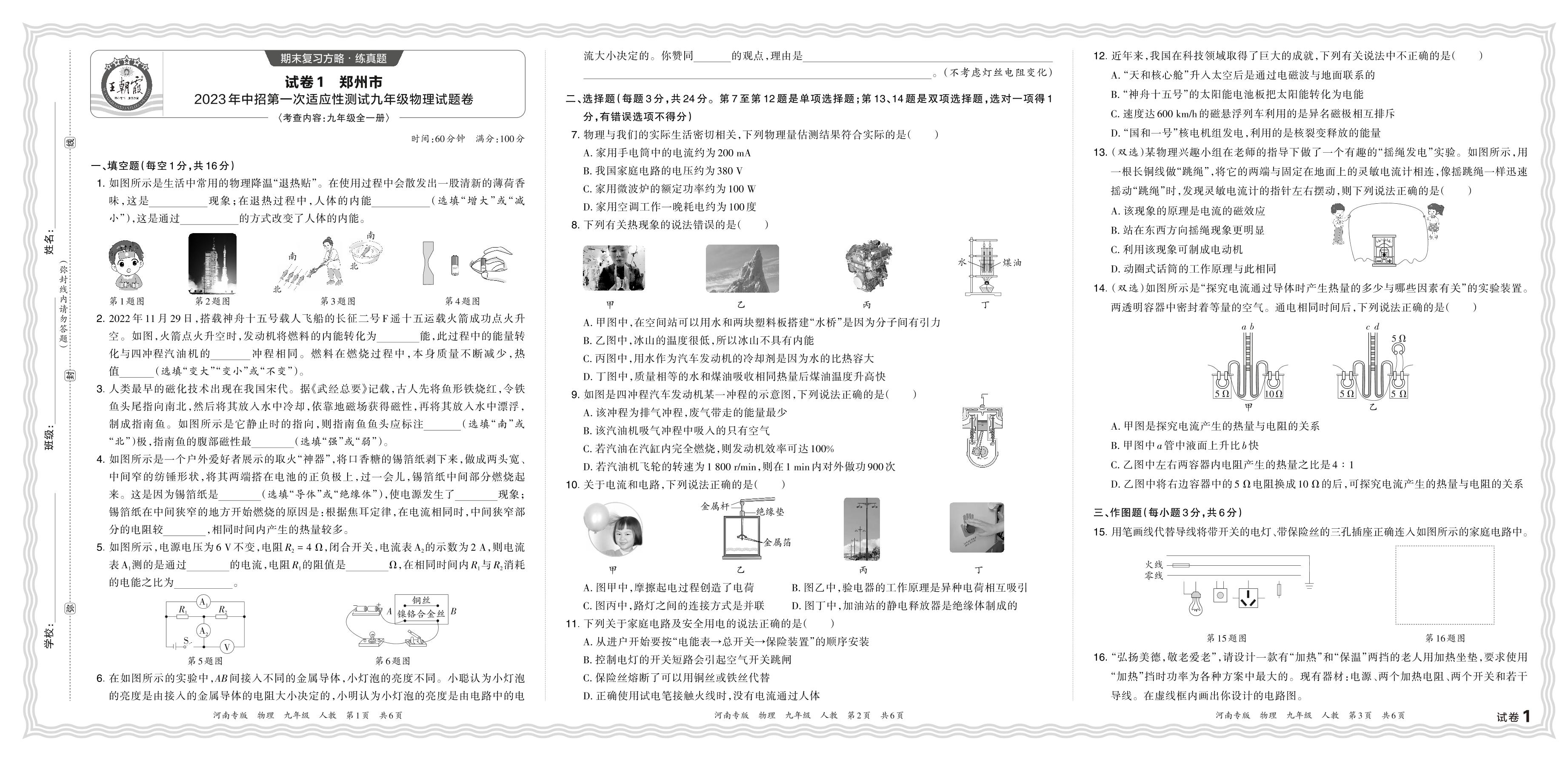 河南省郑州市2023年中招第一次适应性测试九年级物理试题卷(人教版)【1】