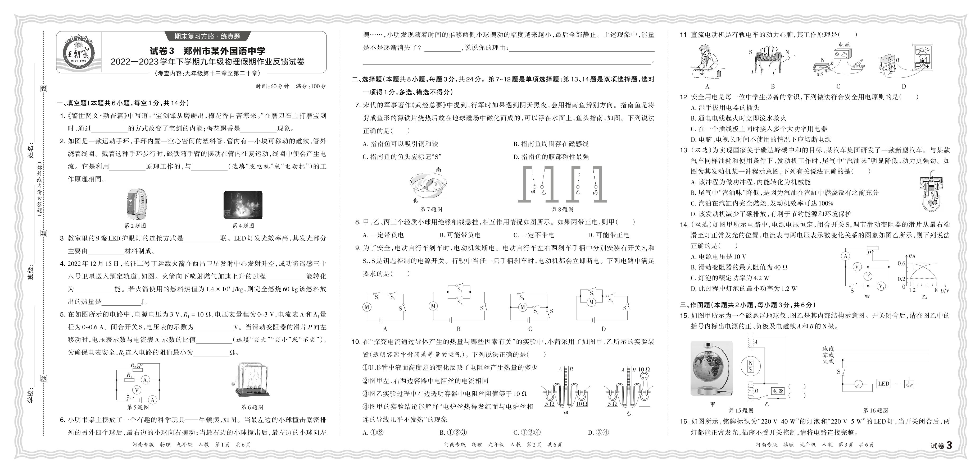 河南省郑州市某外国语中学2022—2023学年下学期九年级物理假期作业反馈试卷(人教版)【3】