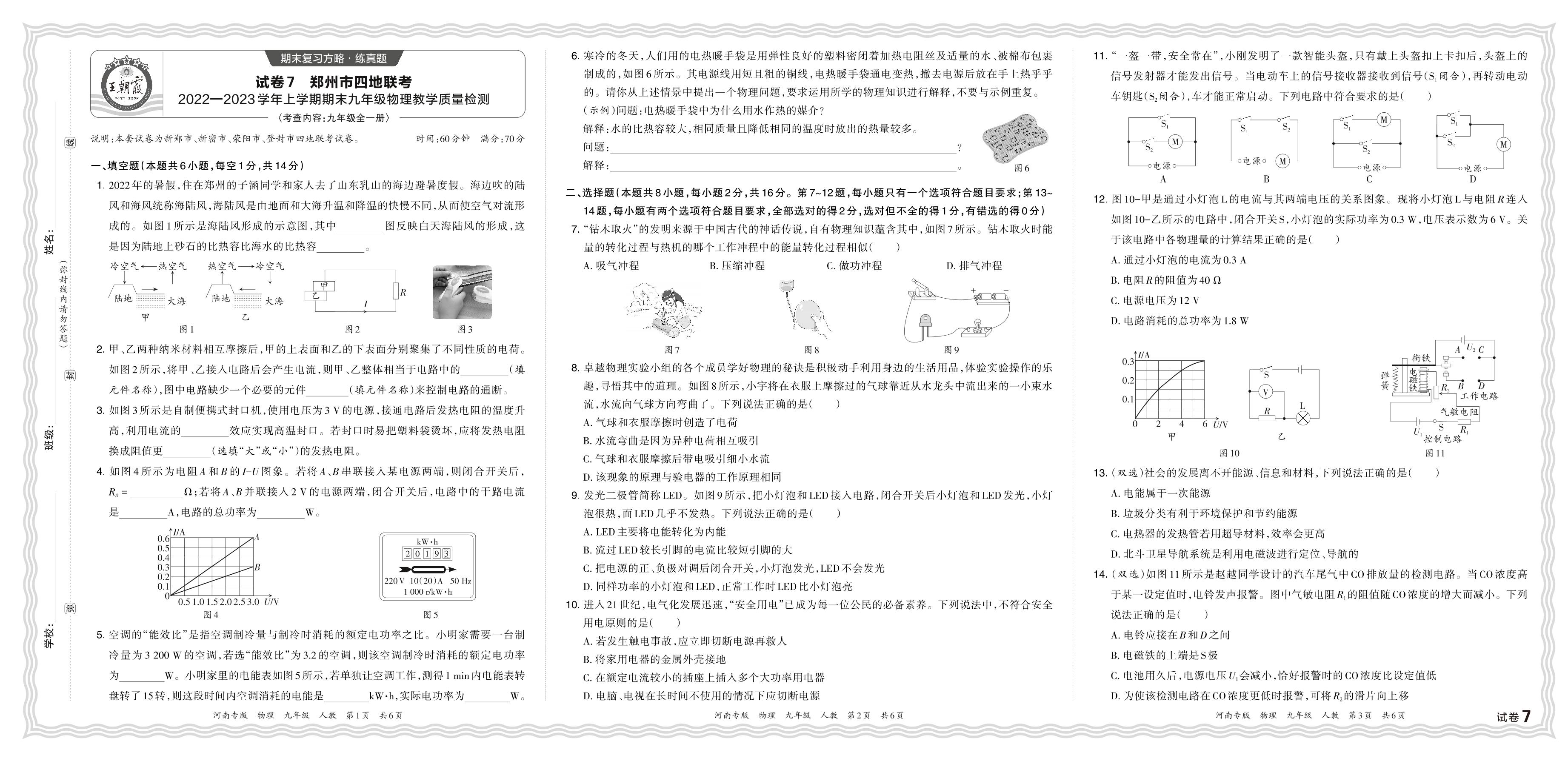 河南省郑州市四地联考2022—2023学年上学期期末九年级物理教学质量检测(人教版)【7】