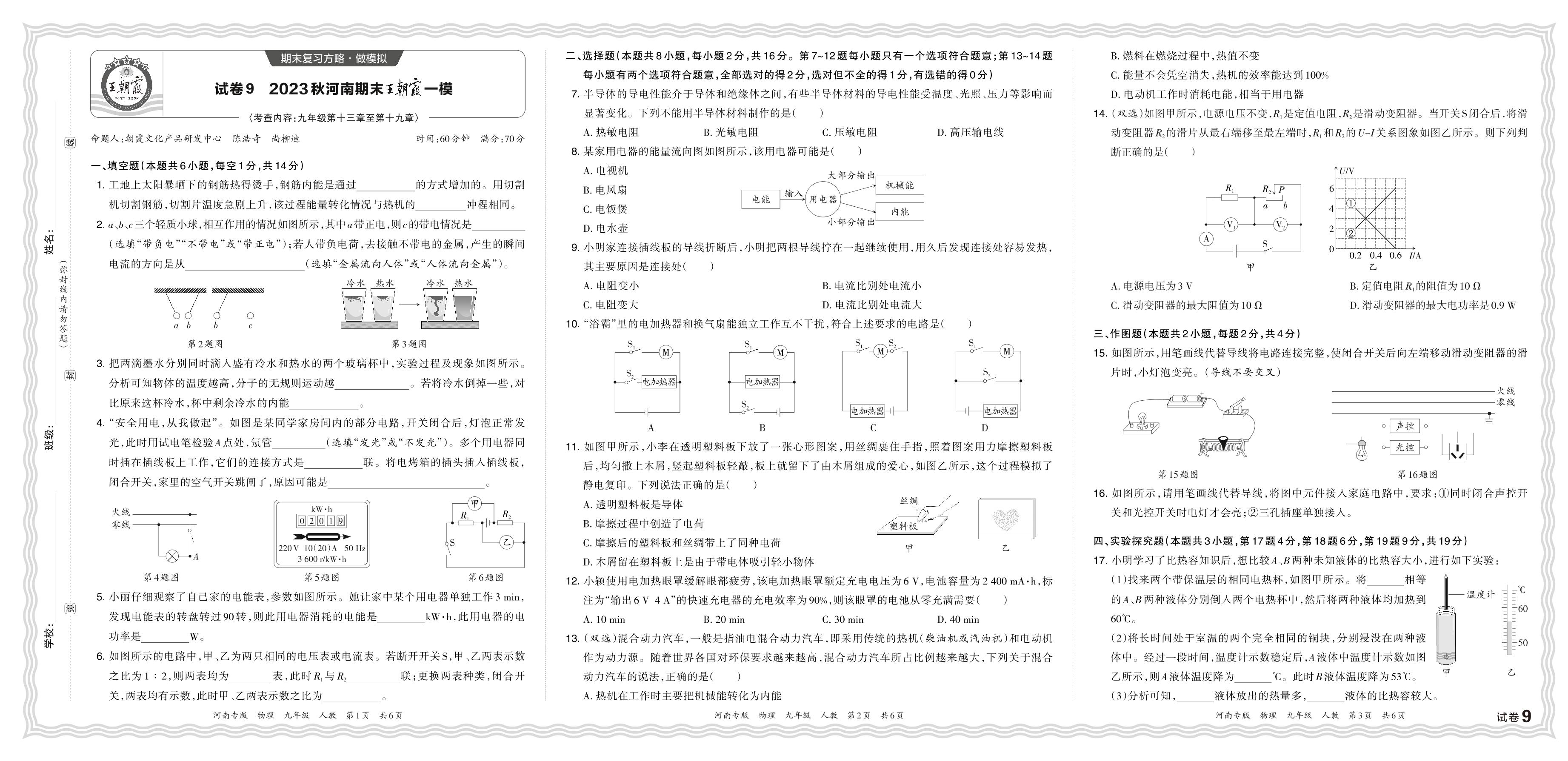 2023秋上册九年级物理人教版 河南期末王朝霞一模
