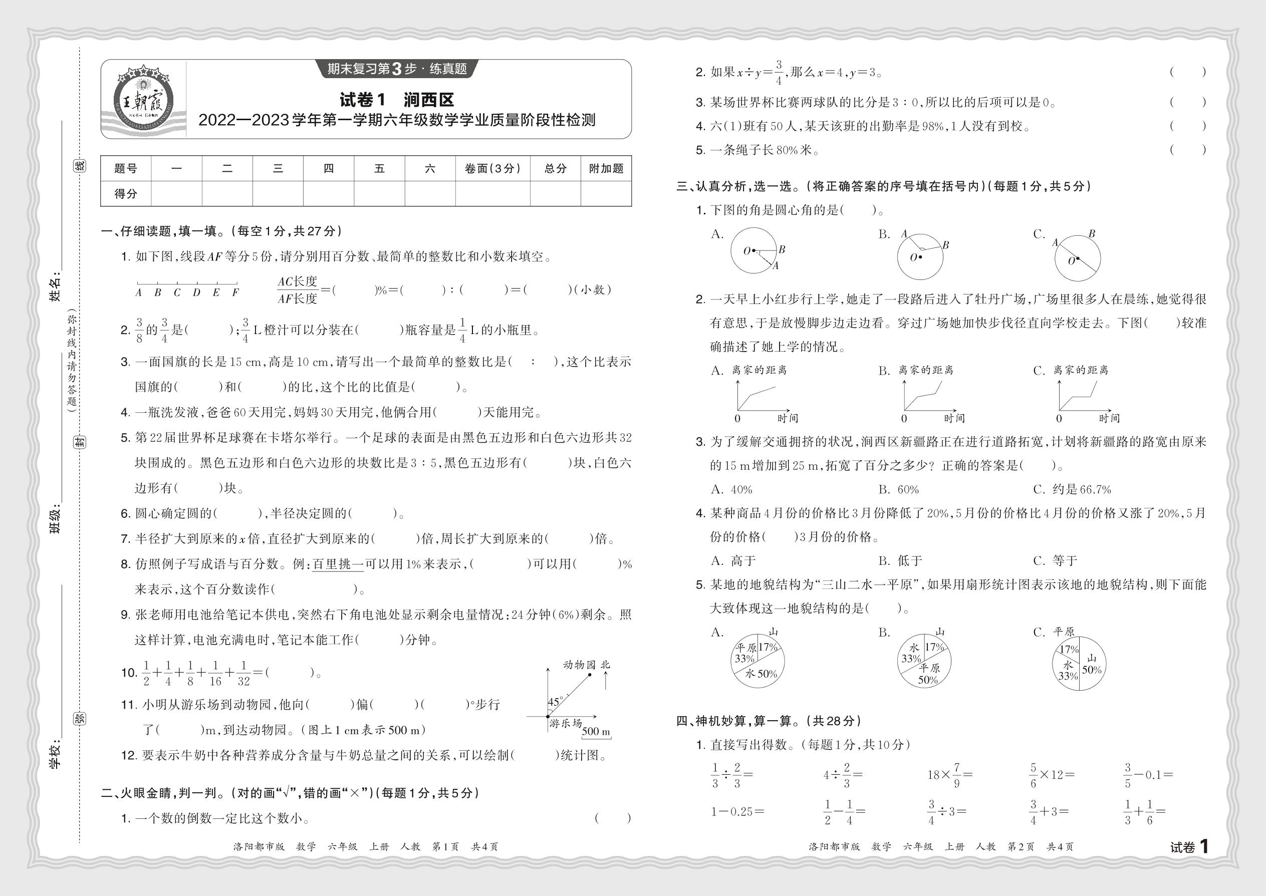 河南省洛阳市涧西区2022—2023学年第一学期六年级数学学业质量阶段性检测(人教版)【1】