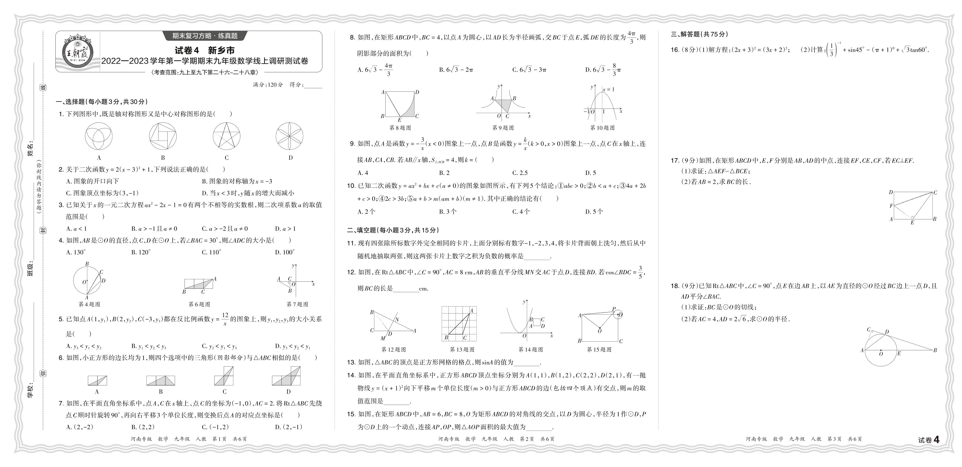 河南省新乡市2022—2023学年第一学期期末九年级数学线上调研测试卷(人教版)【4】
