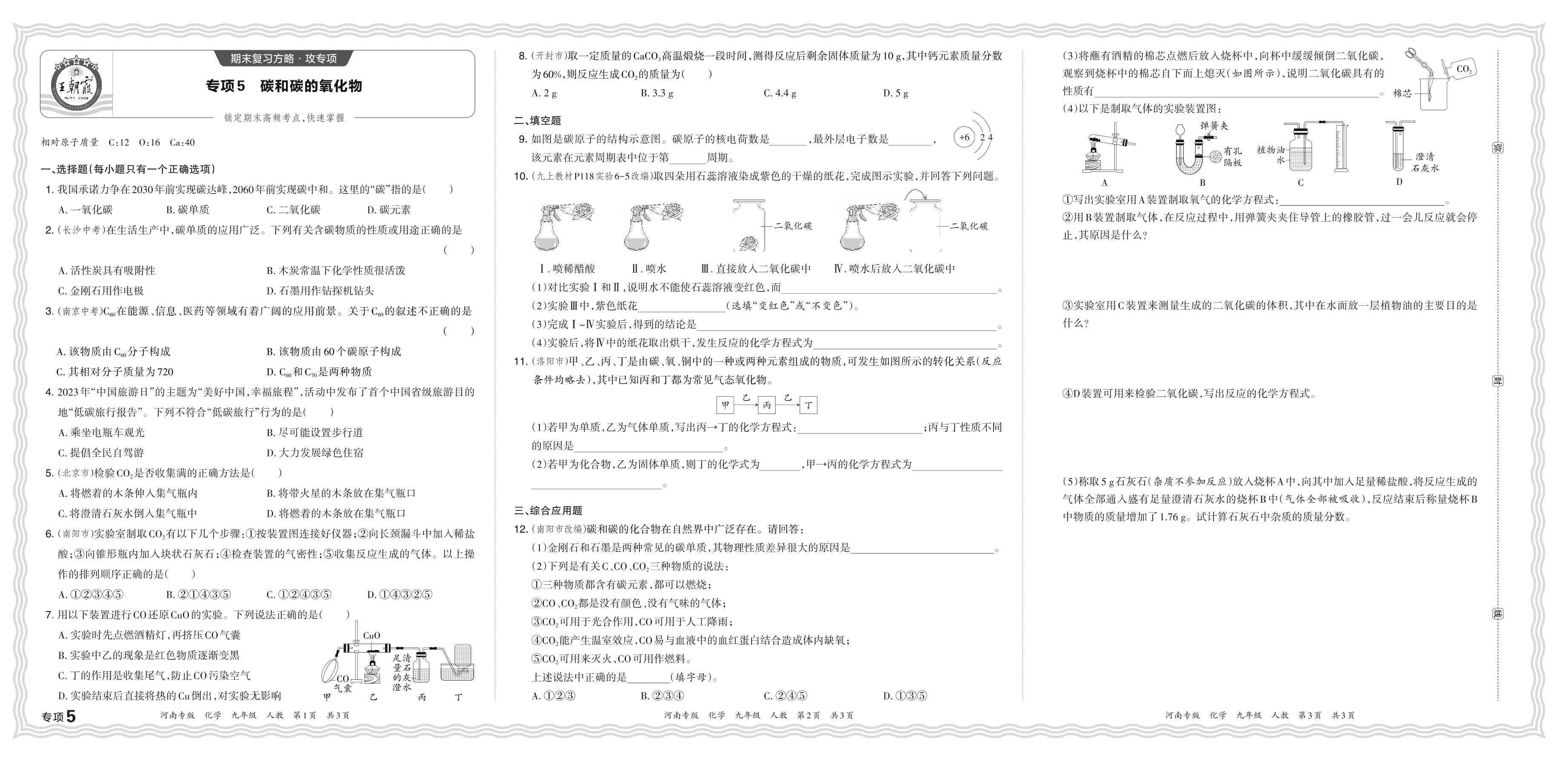 2023秋上册九年级化学人教版 期末专项卷·碳和碳的氧化物【5】