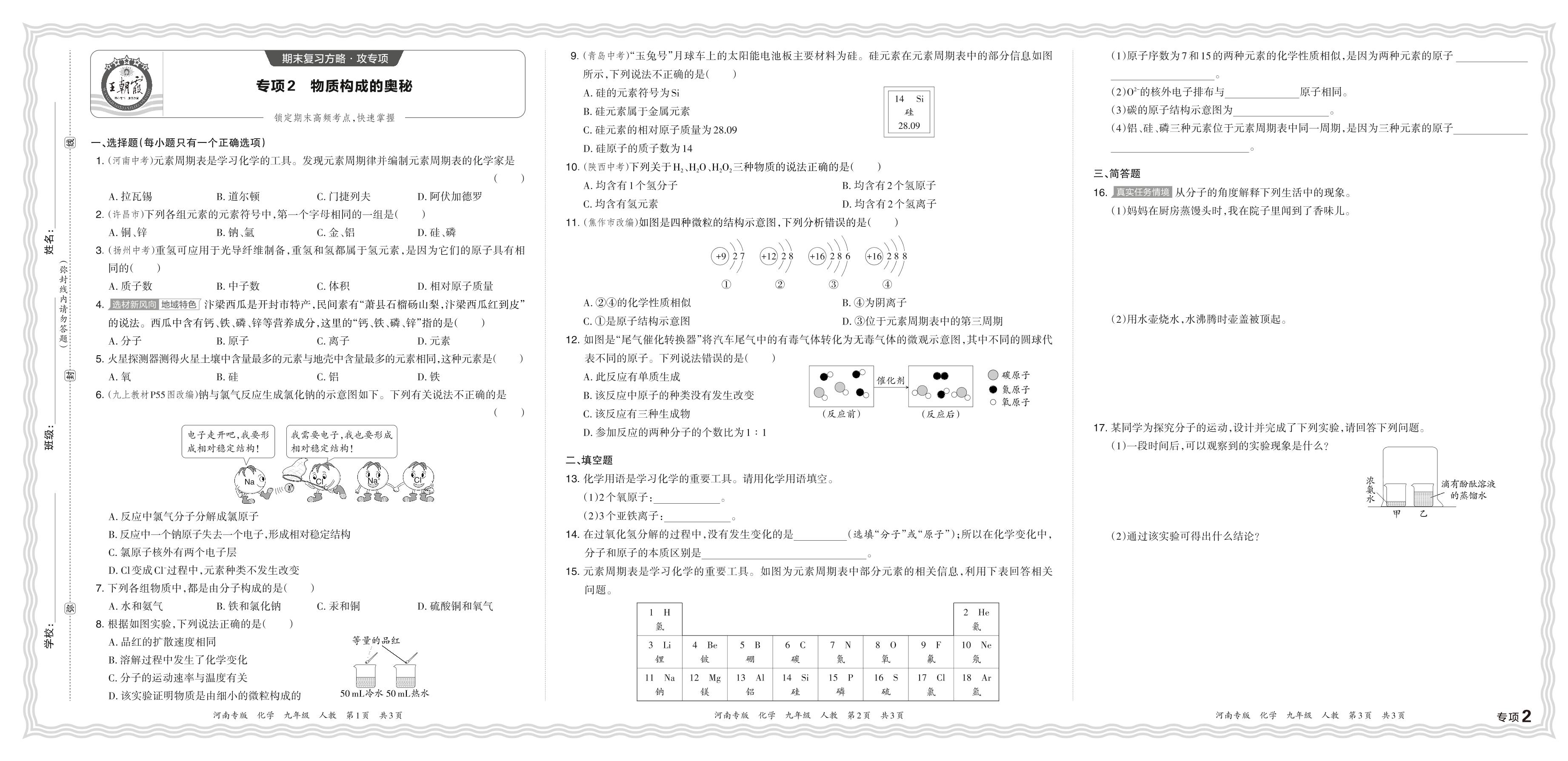 2023秋上册九年级化学人教版 期末专项卷·物质构成的奥秘【2】