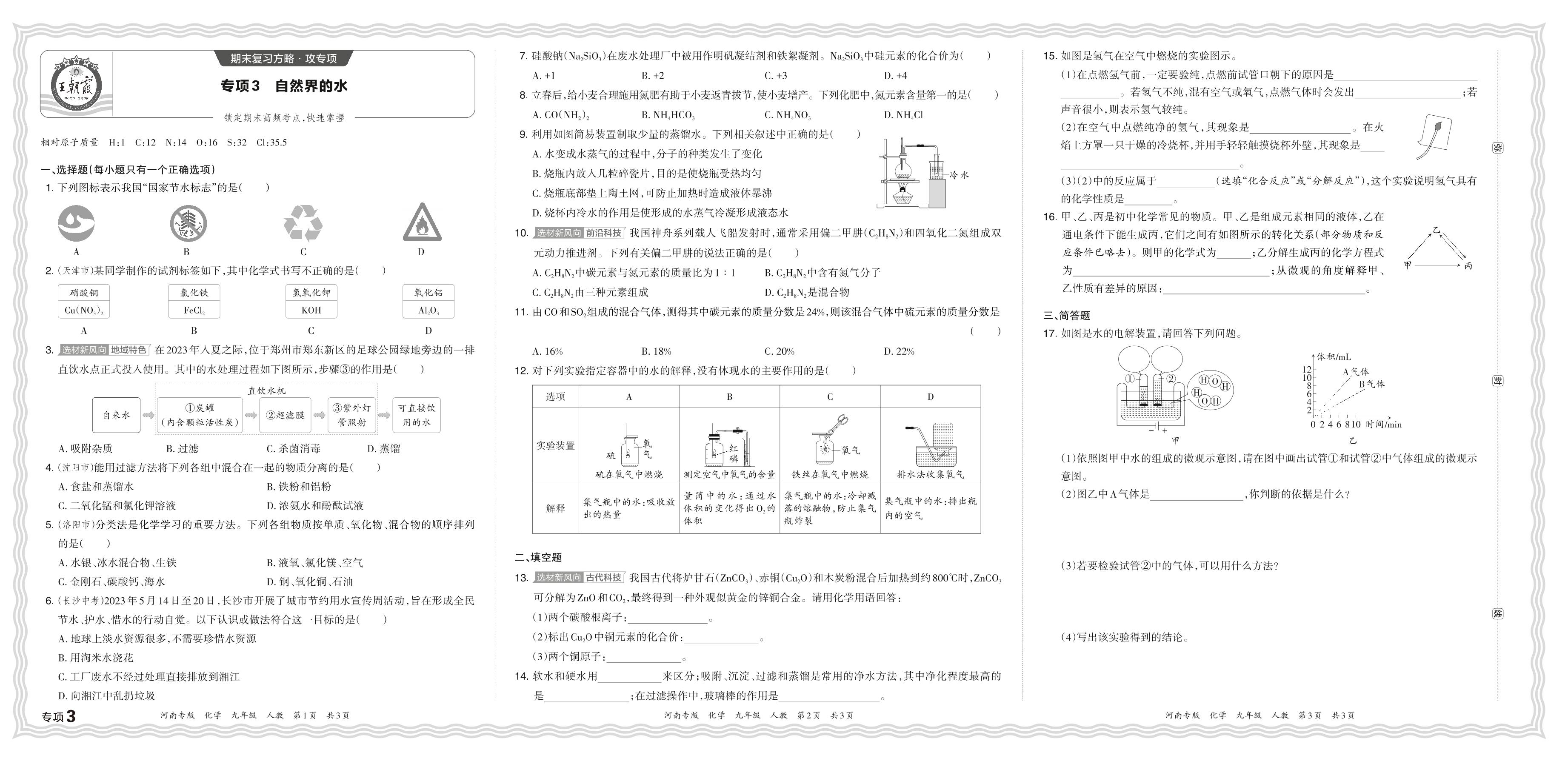 2023秋上册九年级化学人教版 期末专项卷·自然界的水【3】