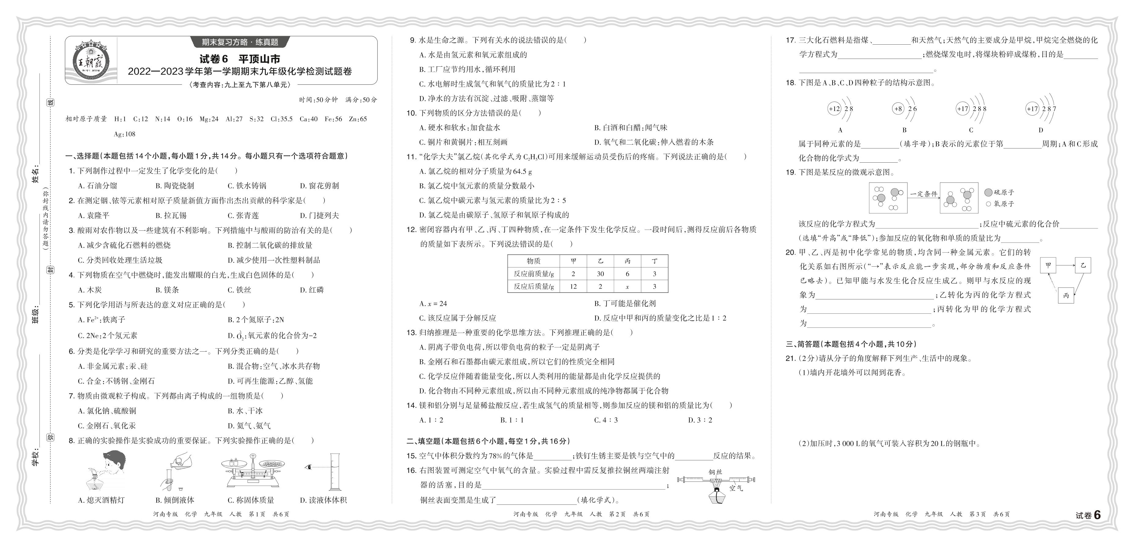 河南省平顶山市2022—2023学年第一学期期末九年级化学检测试题卷(人教版)【6】