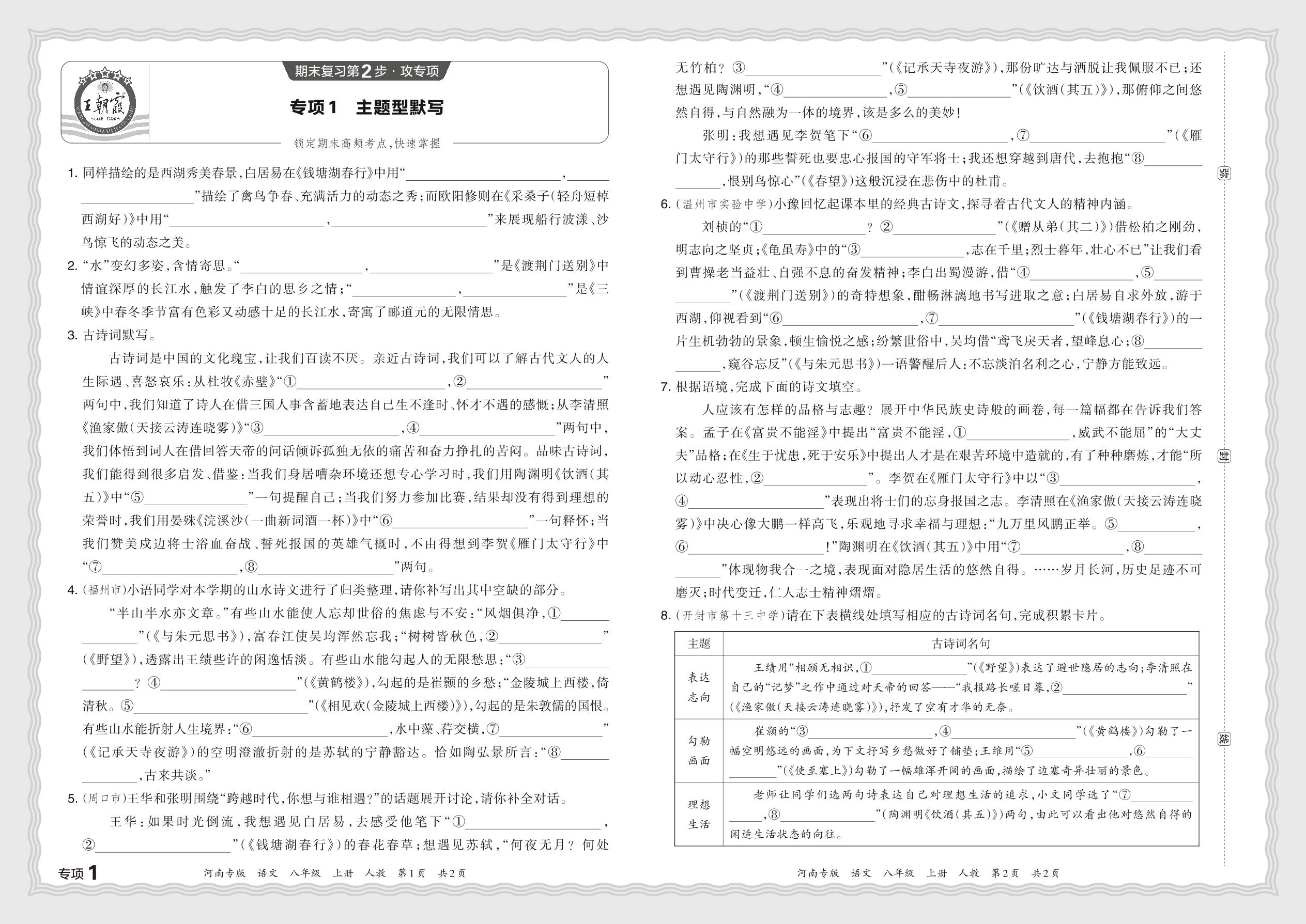 2023秋上册八年级语文人教版 期末专项卷·主题型默写【1】